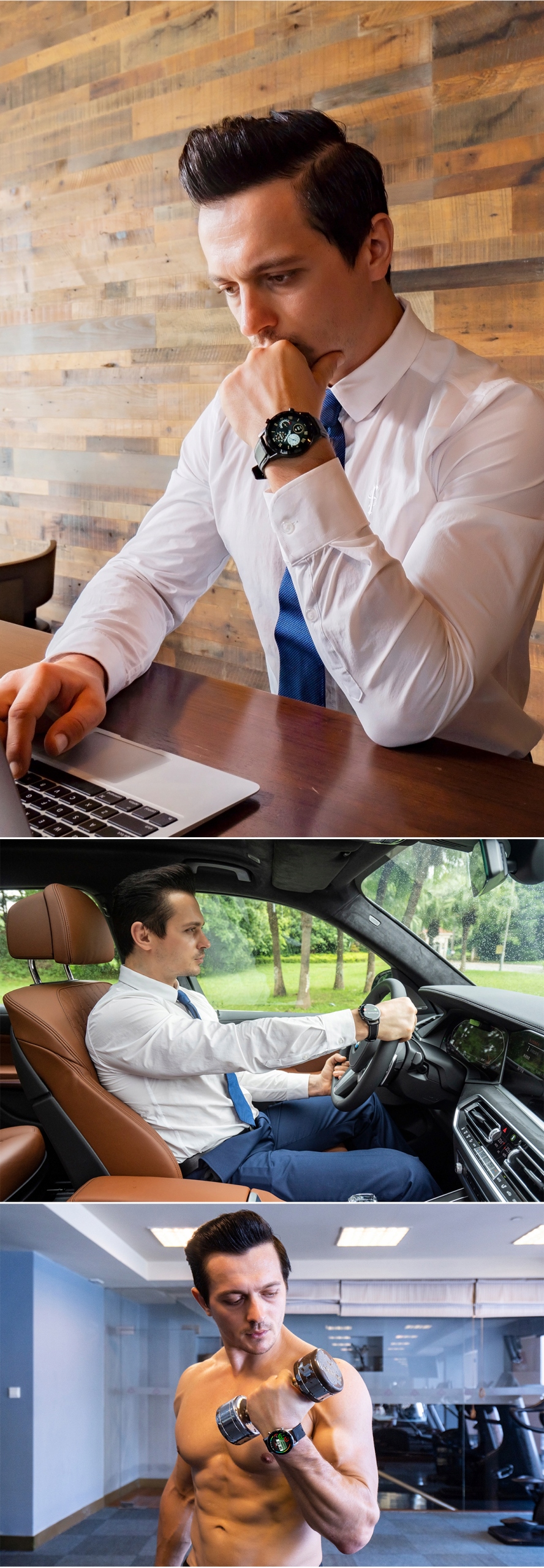 Годинник оснащений IPS HD сенсорним екраном останнього покоління з діагоналлю 1,30" E2E (від краю до краю) з роздільною здатністю 360x360 пікселів і кут огляду 178. Він має 3-осьовий G-сенсор руху, завдяки якому коли ви піднімаєте руку, екран автоматично прокидається, і ви можете переглядати час та іншу інформацію. Після сполучення годинника з телефоном він відображається, він також надає інтелектуальні сповіщення про повідомлення або дзвінки, додатково вібруючи. Ви навіть не маєте щоб вийняти телефон із кишені, щоб побачити, чи хтось вам дзвонить, чи прочитати повідомлення! Спробуйте й переконайтеся, що це зручно. Завдяки простому та інтуїтивно зрозумілому меню зображень , ним керувати дуже легко та приємно. І все це додатково польською мовою!