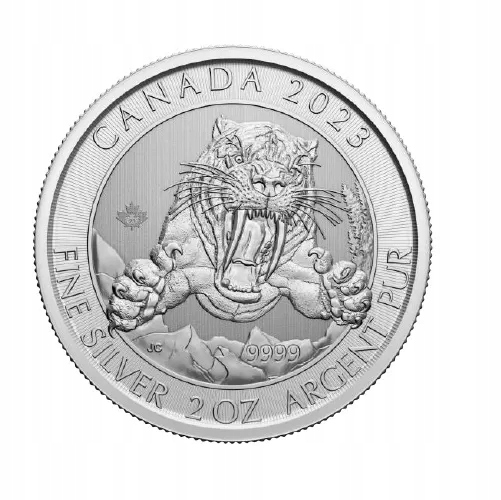Смілодон Шаблезубий кіт Льодовиковий період 2 Oz срібло 2023