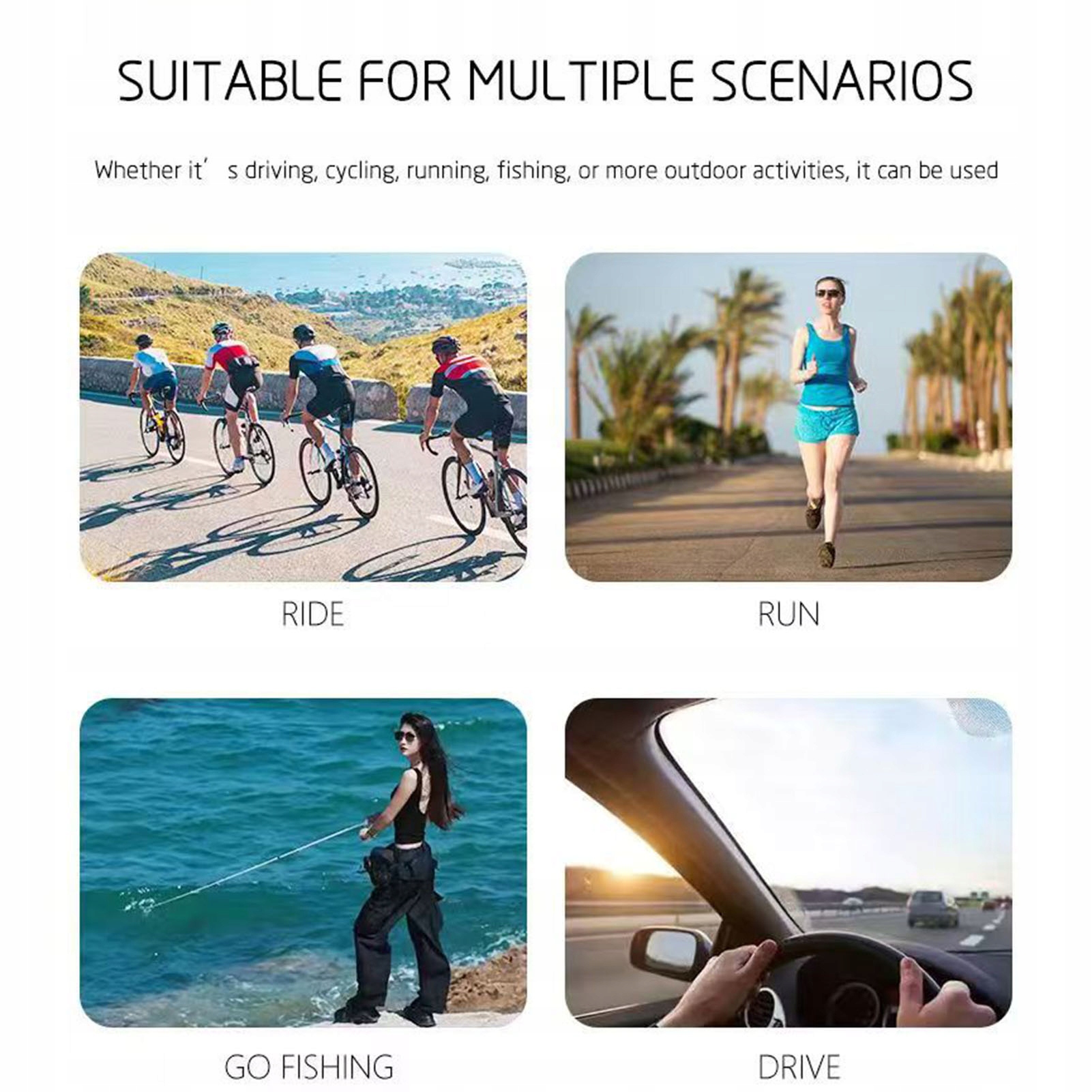5. Програма Ширина: сонцезахисні окуляри виготовлені з високоякісного ABS-пластику, що робить їх хорошим вибором для прихованої зйомки або активного використання, підходить для занять спортом на природі, повсякденних заходів та інших сценаріїв.