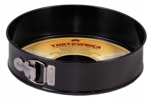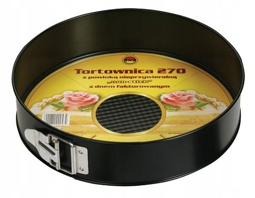 Високоякісна форма для кексів від польського виробника. Діаметр 27 см. Виготовлений з високоякісного листового металу з низьким вмістом вуглецю. Збоку є застібка, яка полегшує надягання/зняття обруча. Форма із захисним шаром "NON-STICK" підвищує стійкість до прилипання тіста, економить енергію (покриття лаком сприяє поглинанню тепла), тісто нагрівається інтенсивніше і рівномірніше, ніж у формах без покриття) і значно полегшує миття після використання.