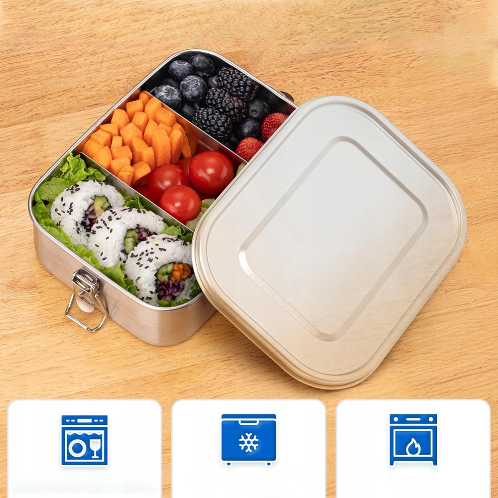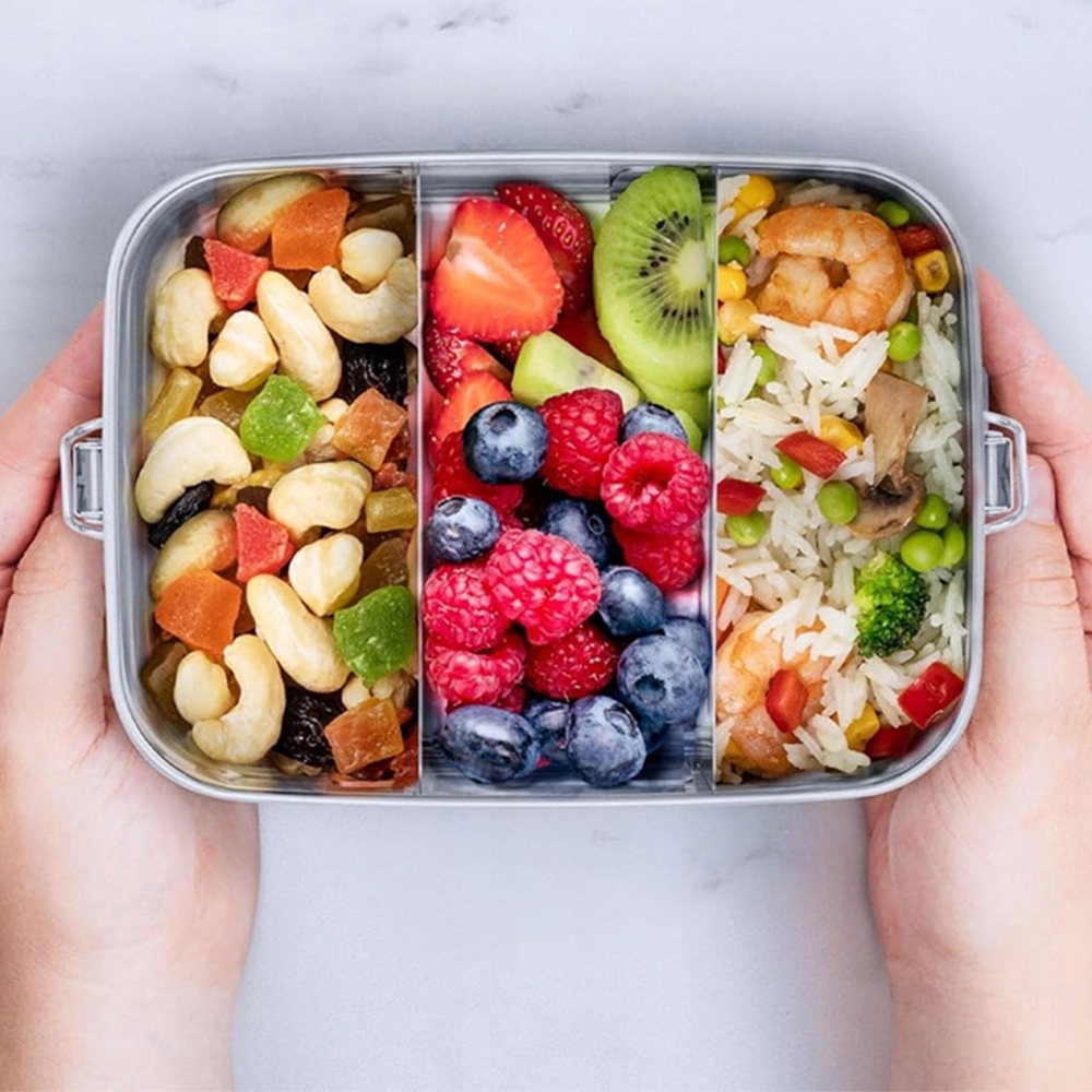 🌞🌞 сталевий обід 3 камери 1000 мл | Герметична коробка для обіду для дітей та дорослих, офіс, подорожі BPA безкоштовно EKO