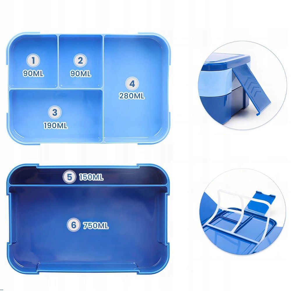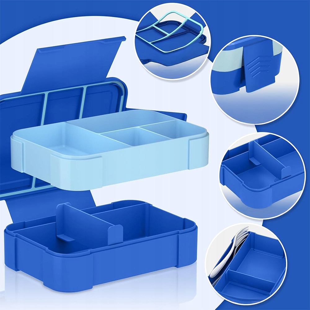 На чотирьох сторінках є невидимі, приховані затискачі, які тісно дотримуються коробки Bento, сильні і не падають легко. Обкладинка має побудоване силіконове ущільнювальне кільце, яке є щільним і не просочується з нього після тремтіння. Дно верхньої контейнера загортається в шар силіконового кільця, що запобігає виходу їжі з середньої камери.