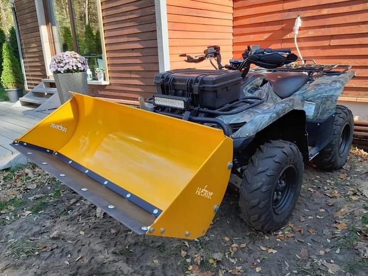 Кріплення: Ківш встановлено в передній частині квадроцикла під монтажною пластиною лебідки, що гарантує швидке, просте та стабільне встановлення плуга та не обмежує дорожній просвіт квадроцикла, тому встановлена монтажна пластина не заважають цілорічному використанню квадроцикла.