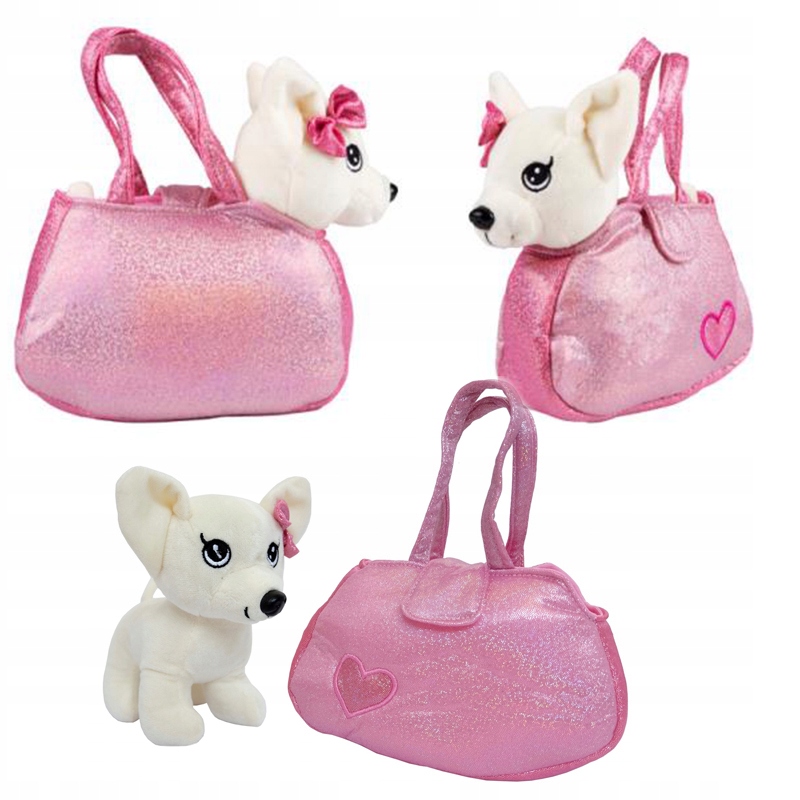 Чудовий талісман, плюшевий песик — чудовий друг, якого можна брати з собою всюди в маленькій блискучій рожевій сумці.