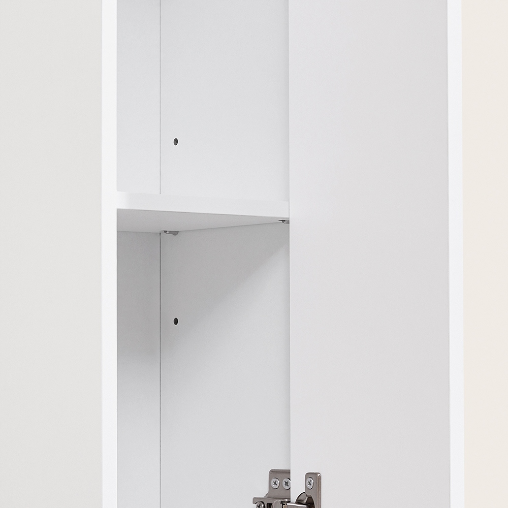 Шафа виготовлена з лакованої плити ПБ і МДФ, вологостійкої і легко миється. Він ідеально підходить для ванної кімнати, пральні, гостьового туалету або навіть кухні.