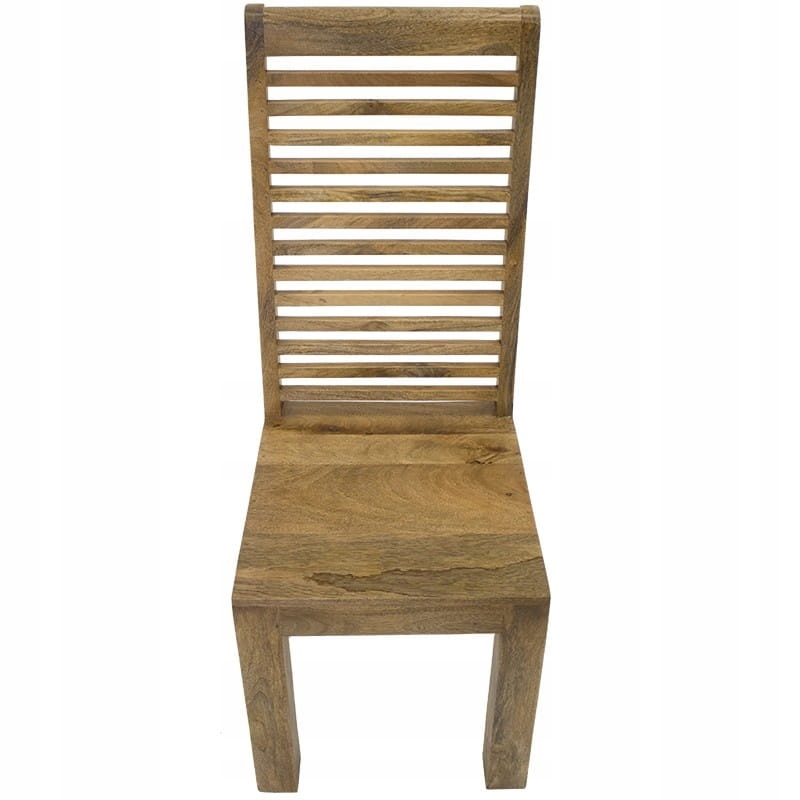 Просте, міцне колоніальне крісло з мангового дерева. На поверхні видно зерна натурального дерева, що робить сидіння візуально дуже привабливим і привертає увагу. Крісло ідеально впишеться в інтер'єр будь-якої вітальні, їдальні або офісу.