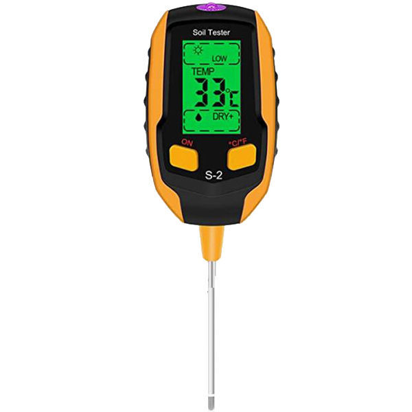 Тестер ґрунту оснащено великим РК-дисплеєм із зеленим підсвічуванням, що спрощує роботу для відображення та зчитування цифрових параметрів вдень і в темряві. Використовуйте 4 батареї 1,5 В ААА (входять у комплект), на дисплеї з’явиться повідомлення про низький заряд батареї.