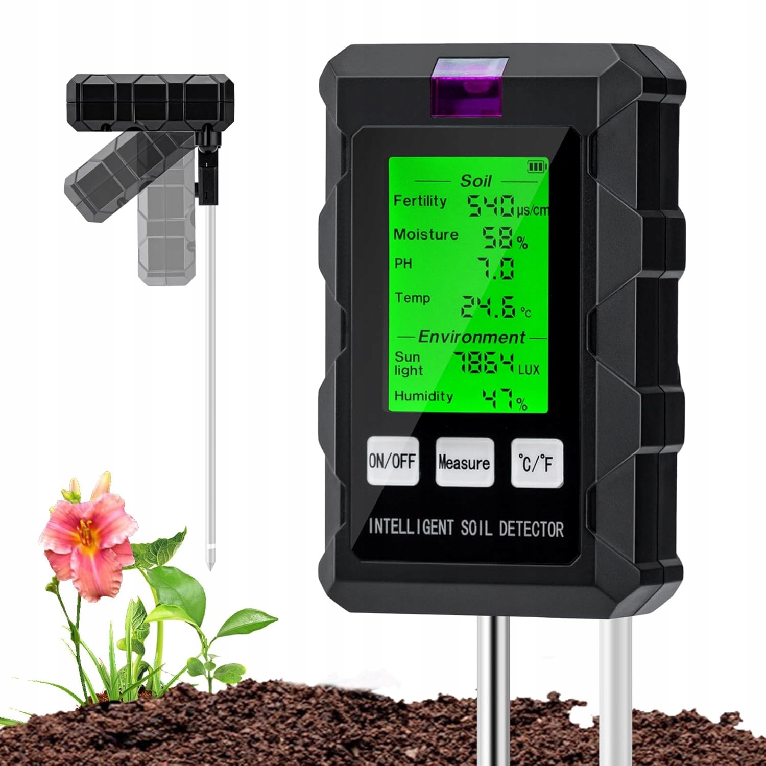 - Функції 6 в 1 - комплексний тестер ґрунту, який вимірює родючість, температуру, освітленість, рН, вологість ґрунту та вологість навколишнього середовища, все в одному пристрої для садівників.