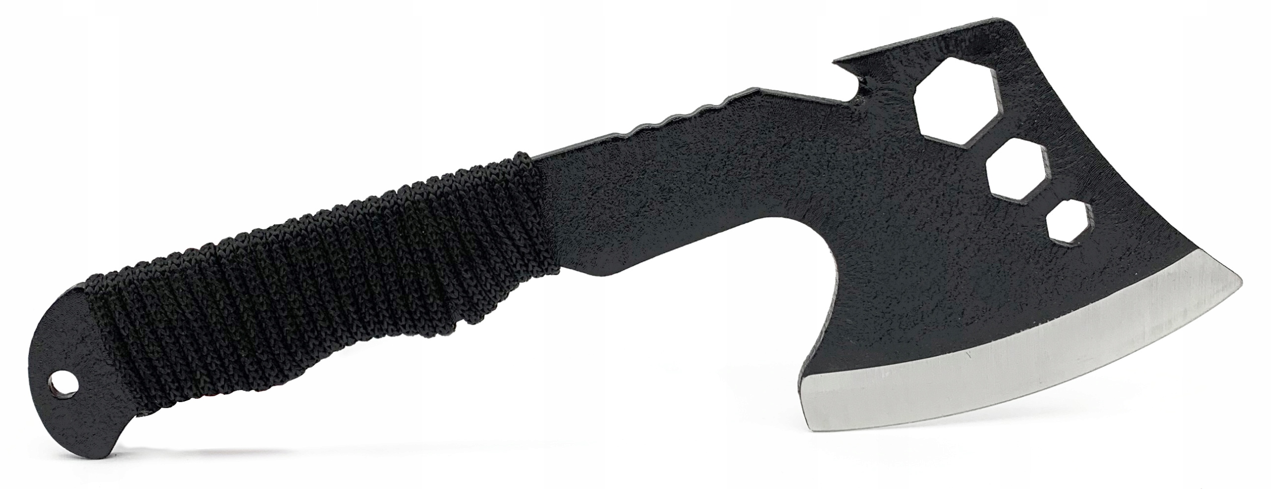 Сокира - це багатофункціональний інструмент b> має отвори для відкручування шурупів і додаткове лезо для обрізання волосіні, мотузок і ременів.