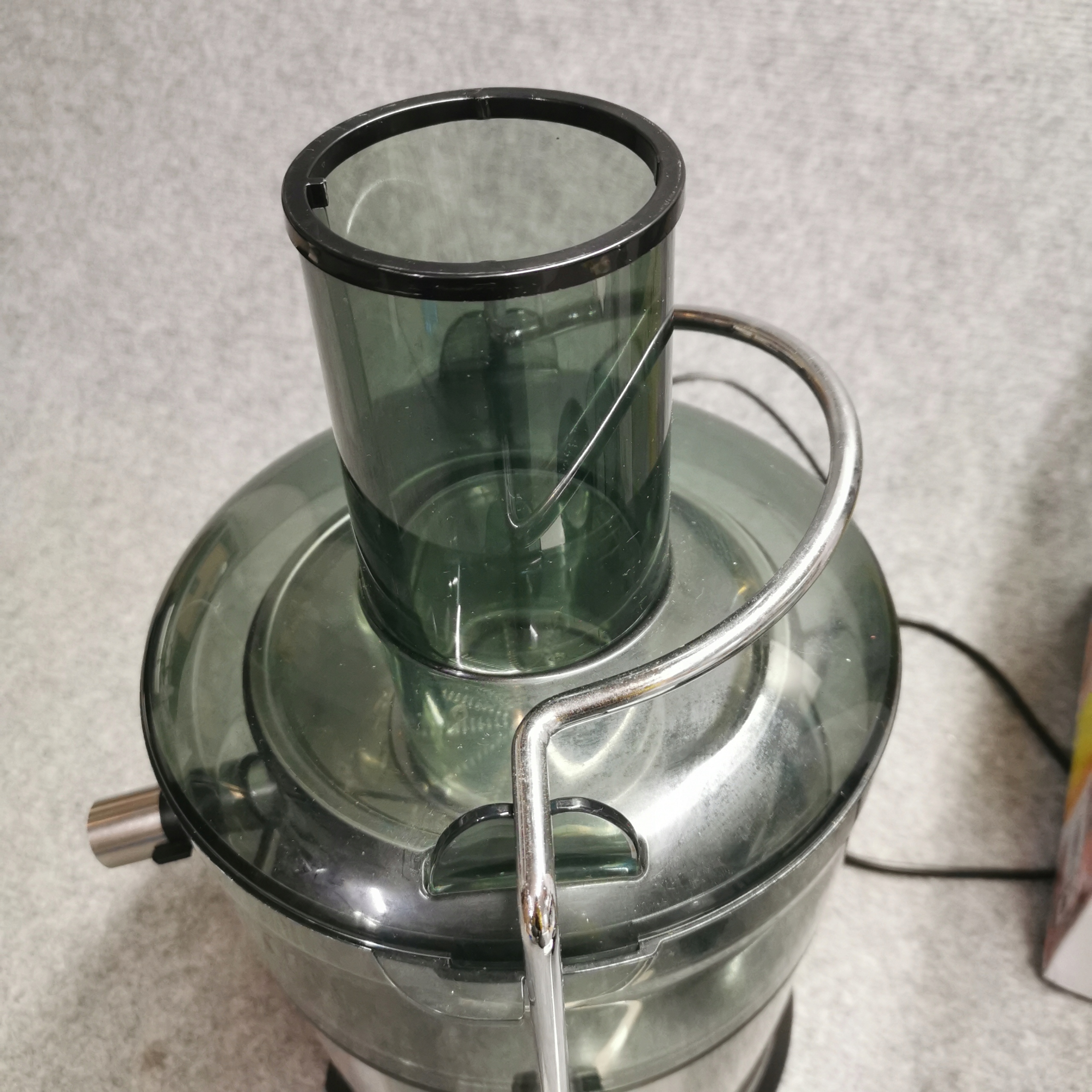 - Отвор шириною 85 мм забезпечує зручне розміщення цілих овочів і фруктів без необхідності їх подрібнення. Пристрій містить ємність для соку об’ємом 1 л і ємність для м’якоті та м’якоті 0,9 л. Ємність для соку оснащена кришкою, яка ідеально підходить до воронки соковижималки. Ця воронка оснащена ручним крапельним стопором - просто поверніть його, і ви відразу перекриєте потік рідини. Обидва ці фактори допоможуть вам уникнути розливання соку та створення непотрібного безладу на кухні.