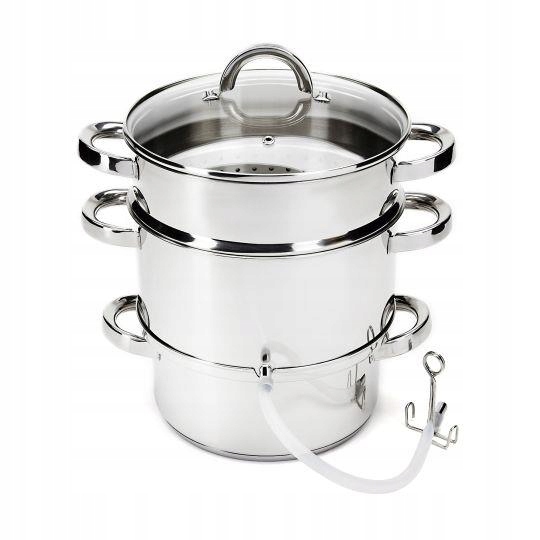 Соковижималка Midi виготовлена з нержавіючої сталі. Має кришку із загартованого жаростійкого скла. Використовується для отримання соку з фруктів або овочів за допомогою гарячої пари. Підходить для всіх типів плит, включаючи індукційні. Виріб можна мити в посудомийній машині. Незамінний у кожному домі.