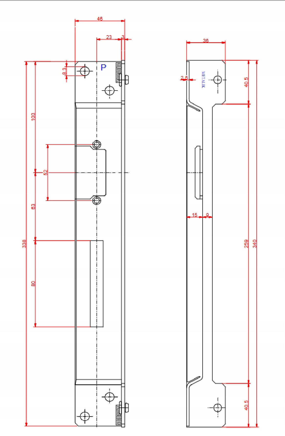 Симетрична структура - Відстань до кінця корпусу з обох боків гака є рівномірним, що полегшує встановлення завдяки меншому розміру, ніж у асиметричній версії. Додатковою перевагою є отвори на одній висоті в рамці незалежно від напрямку дверей.