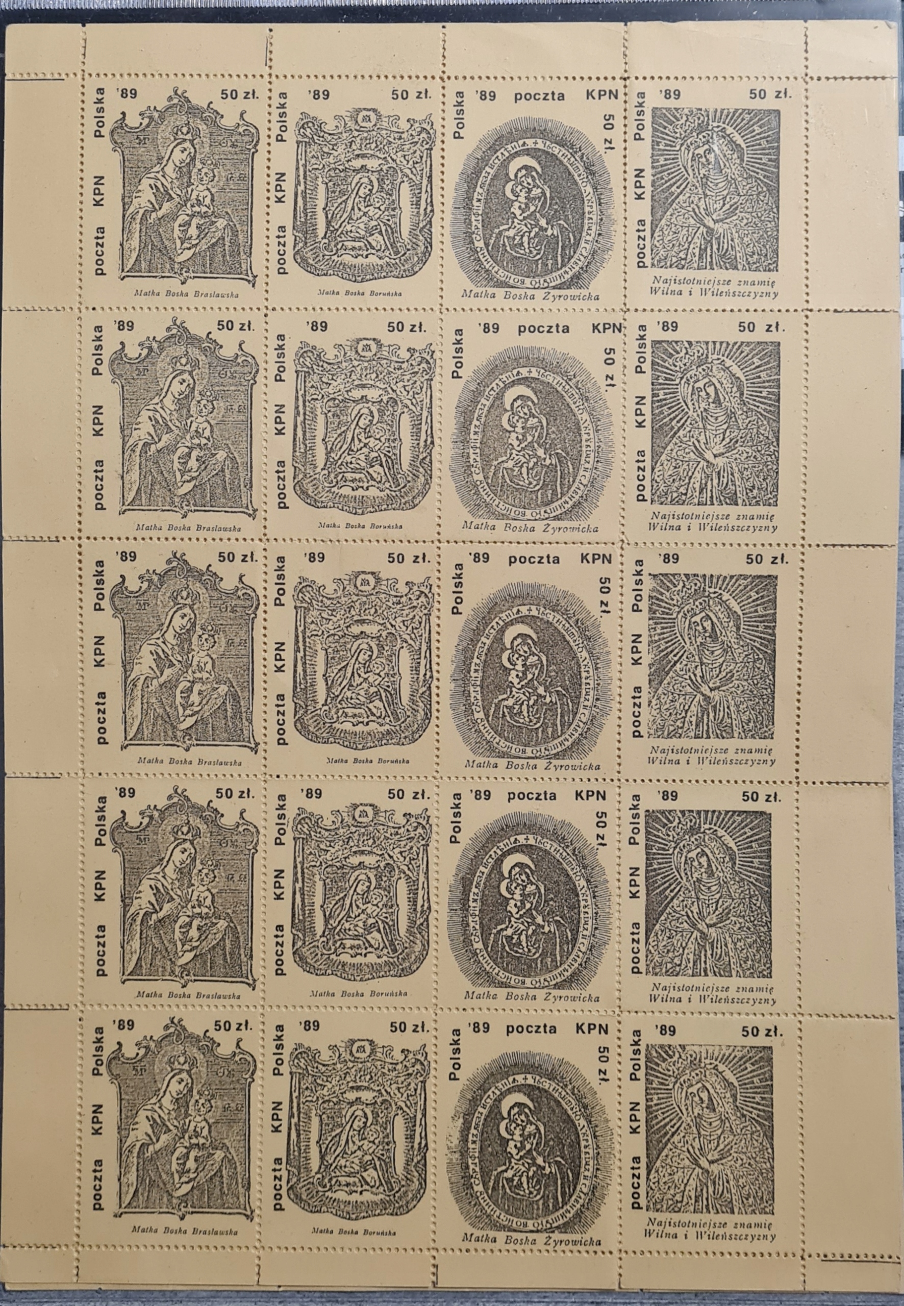 СОЛІДАРНІСТЬ - КОМПЛЕКТ 4, КПН ПОШТА 1989 РІК АРКУШ