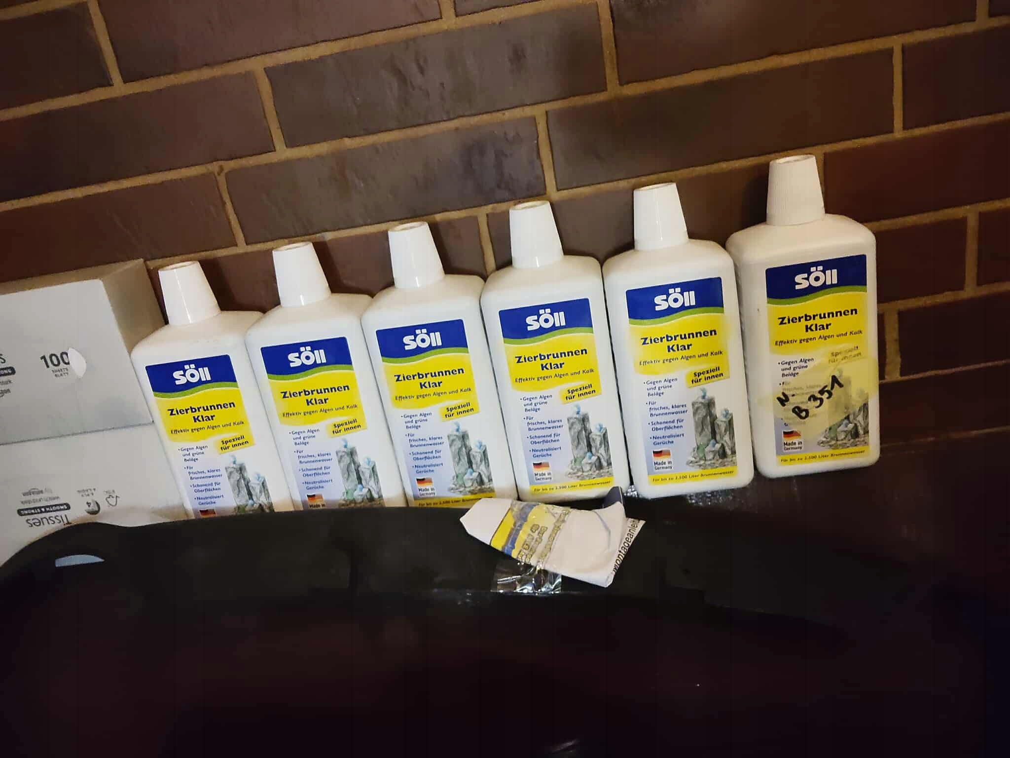 SpringbrunnenKlar надає внутрішнім і зовнішнім водним установкам природну свіжість і запобігає забрудненню водоростями. Формула цього рідкого альгіциду нешкідлива для поверхонь і не перешкоджає будь-яким дезінфікуючим засобам, які використовуються для підготовки води в фонтанах і декоративних фонтанах всередині і на вулиці. Непривабливі вапняні відкладення видаляються та запобігають їх повторному утворенню. Завдяки SpringbrunnenKlar вода, призначена для декоративних цілей, не містить водоростей і виглядає привабливо.