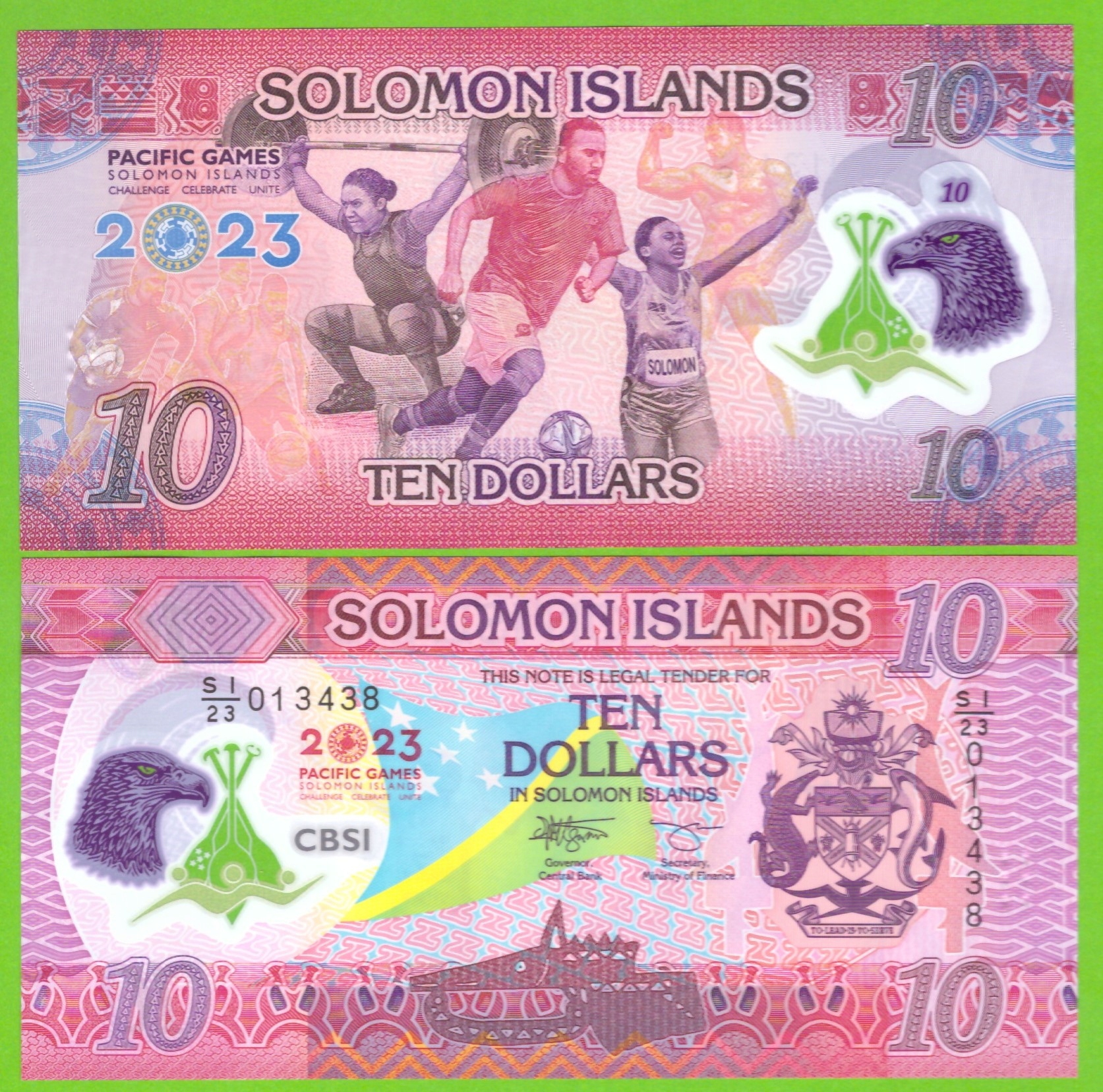 СОЛОМОНОВІ ОСТРОВИ 10 ДОЛАРІВ 2023 P-W39 UNC POLIMER 17th PACIFIC GAMES