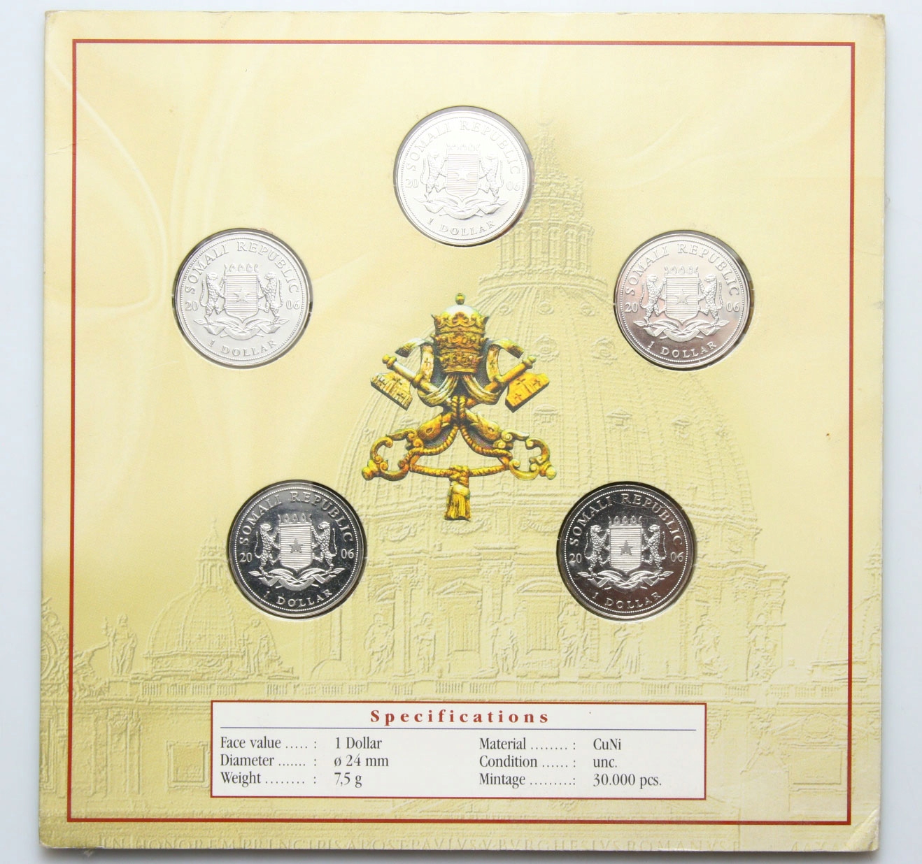 Сомалі - Монетний двір - 5 монет 1 долар 2006 БЕНЕДИКТ XVI Stan UNC