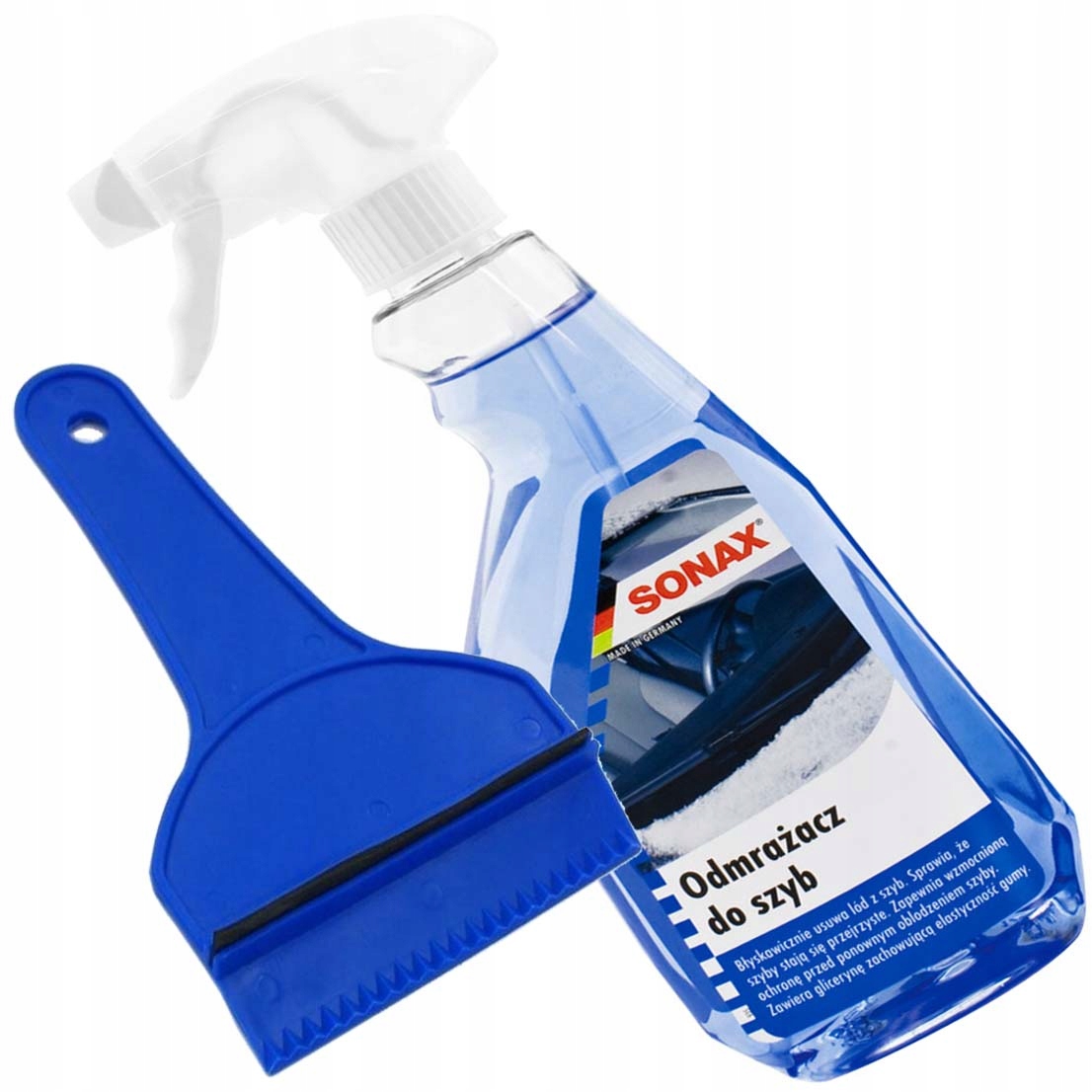Видаляє лід із вікон, захищає запобігає повторному обмерзанню та робить вікна прозорими. Забезпечує відмінну видимість. Не залишає розводів на склі. Розморожувач Sonax також можна використовувати для розморожування щіток склоочисників, запобігаючи їх передчасному зносу. Містить гліцерин, який зберігає еластичність гуми.