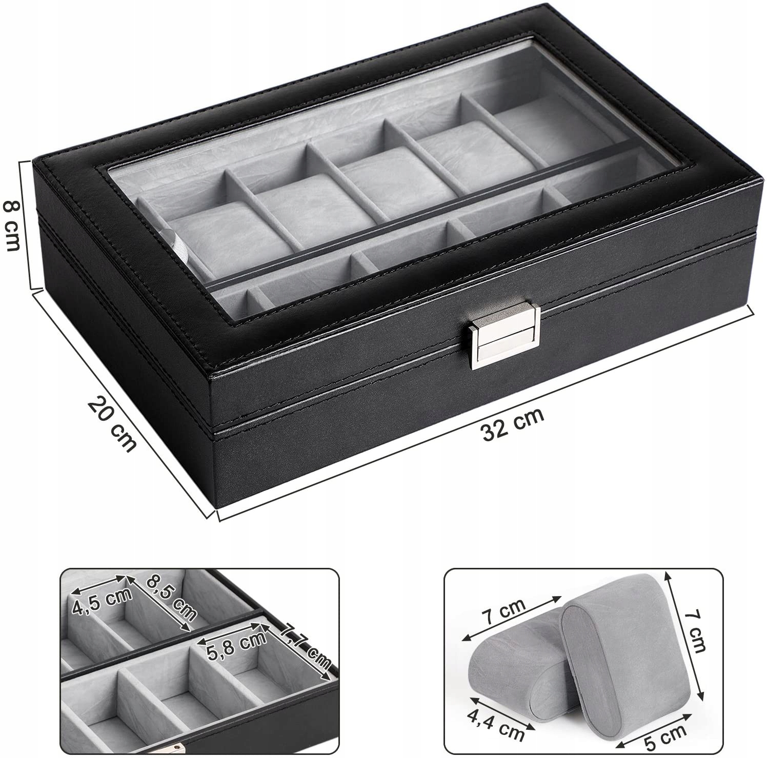Ця елегантна коробка з 11 подушками захищає ваші улюблені годинники не тільки від шкідливих факторів, але й підкреслює їх унікальність.