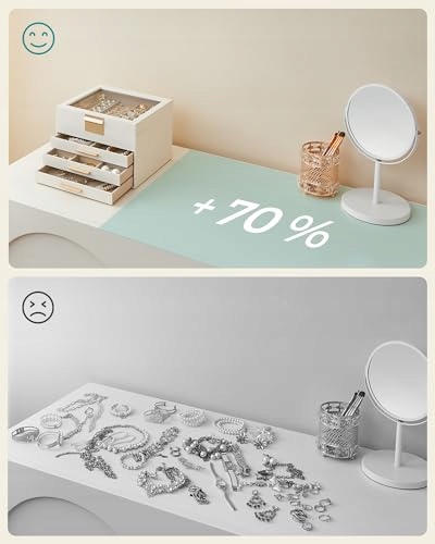- [Прозора скляна кришка] Під прозорою скляною кришкою ви можете одразу побачити всі свої улюблені прикраси. Він не лише стильно оформлений, але й добре захищений від пилу
