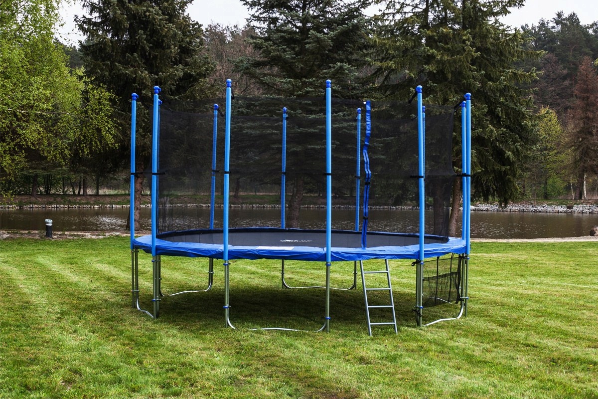 Виріб оснащено надміцним і стійким до погодних умов пружинним чохлом і драбиною з широкими сходинками, завдяки якій ви не більше не матиме проблем із безпечним підйомом на батут.