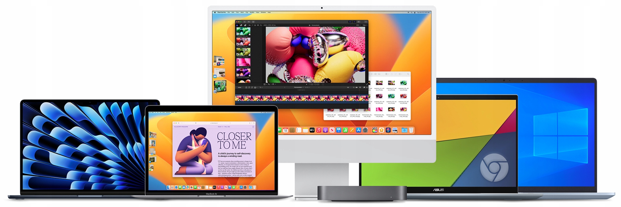 Підключіть до трьох моніторів 4K при 60 Гц одночасно за допомогою лише одного порту Thunderbolt або USB4. Технологія DisplayLink дозволяє підключати до трьох додаткових моніторів до вашого Mac із процесором M1 або M2