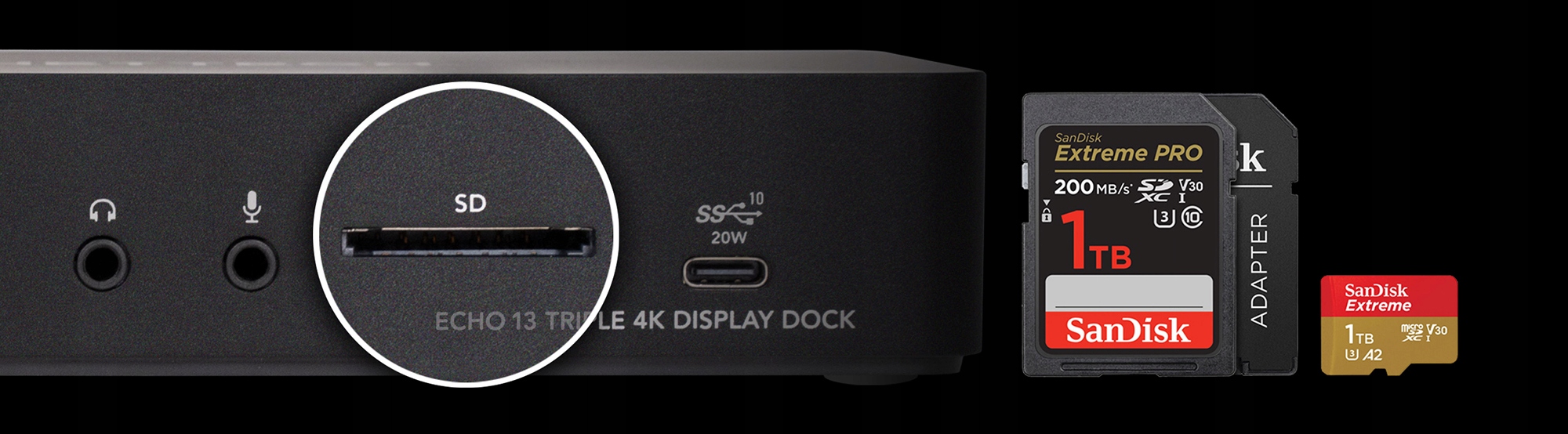 Вбудований слот для карток SD сумісний із картками пам’яті SD™, SDHC™ і SDXC™ і підтримує швидкість читання 320 МБ/с із картками SDXC UHS-II, що дозволяє швидко завантажувати фотографії та відео. Крім того, карти microSD також підтримуються за допомогою адаптерів, які зазвичай додаються до карток.