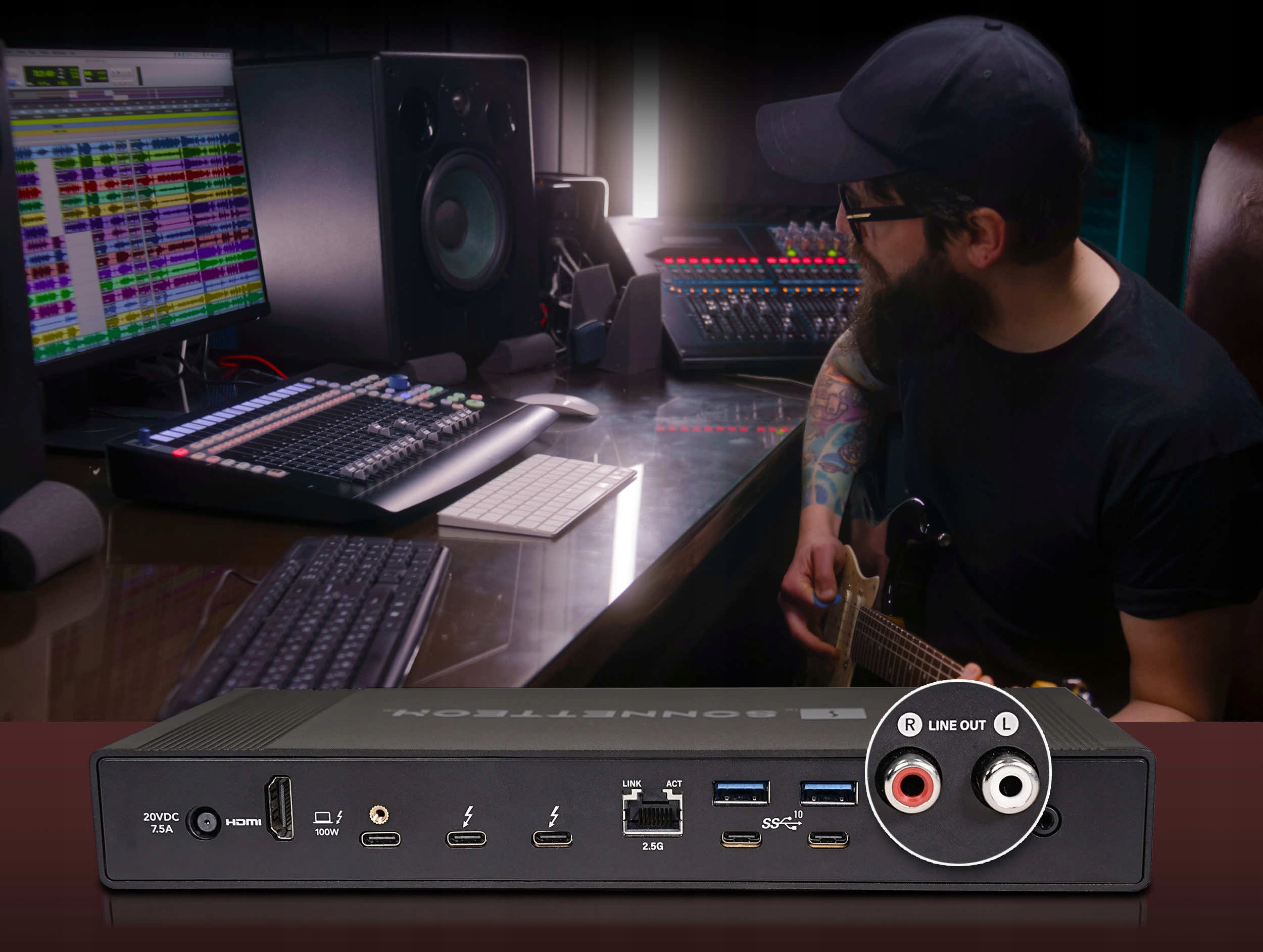 Док-станція Echo 20 Thunderbolt 4 SuperDock оснащена стереороз’ємами RCA. Виходи RCA забезпечують рівномірний лінійний звук, підключаючи вашу солодку музичну бібліотеку до пари активних динаміків. Виходи RCA також ідеально підходять для прямого підключення до ресивера, підсилювача потужності або мікшера.