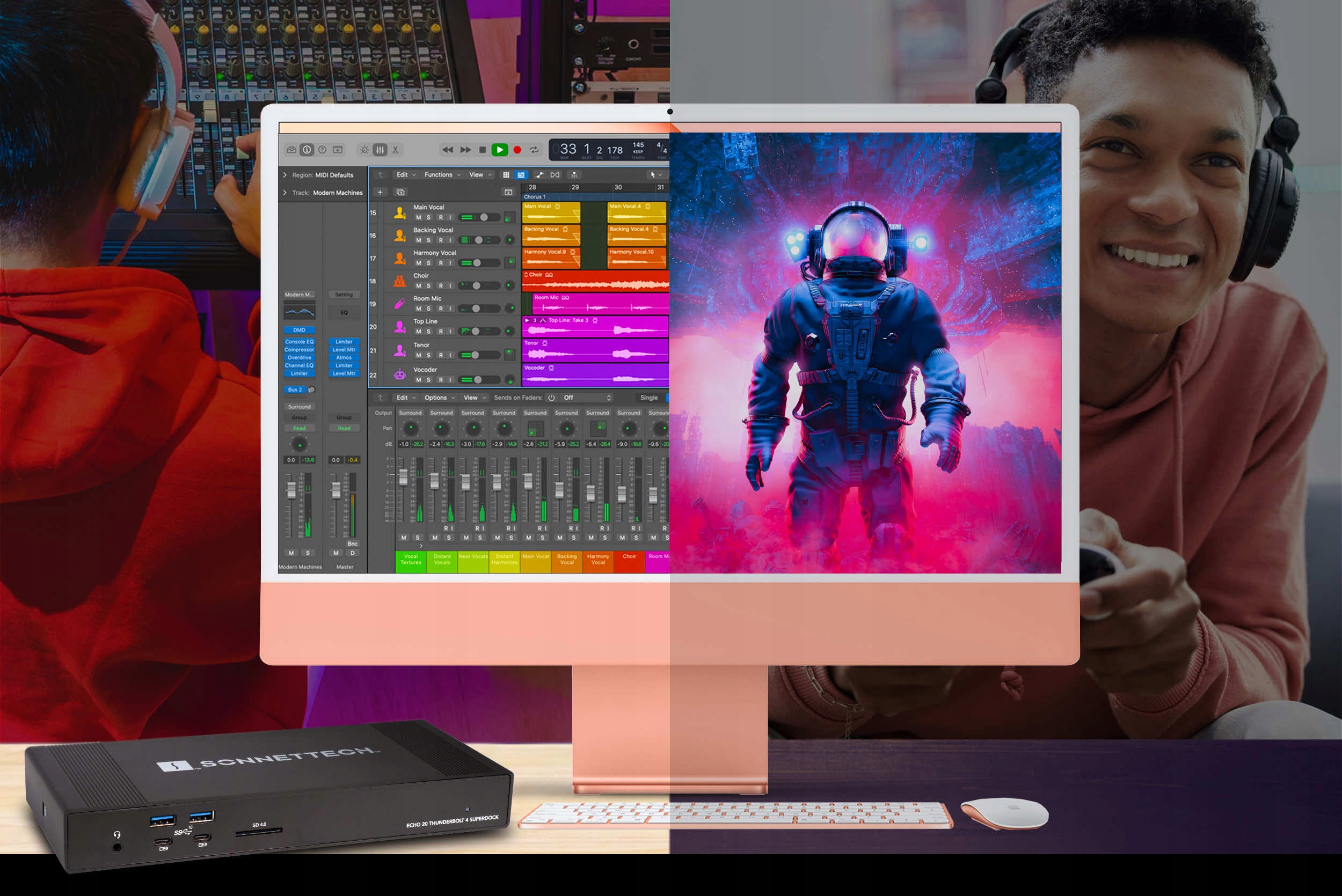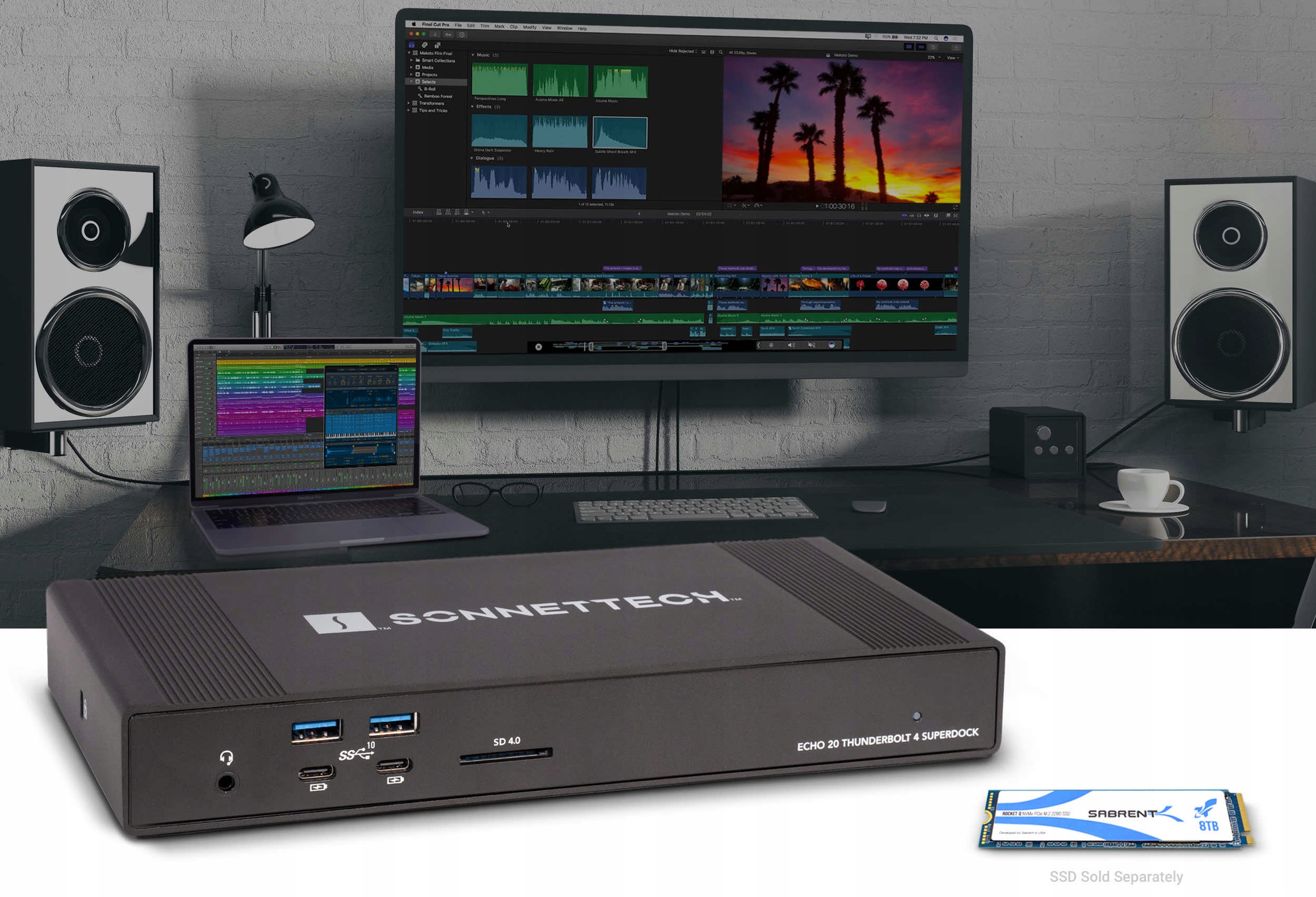 Sonnet Echo 20 Thunderbolt 4 SuperDock — універсальна док-станція Thunderbolt 4 із трьома портами Thunderbolt 4, одним слотом для накопичувача M.2 SSD, одним портом HDMI 2.1, 2,5 Гбіт Ethernet, вісьмома USB-портами 10 Гбіт, картою зчитувач, аудіовихід і підтримка дисплеїв із роздільною здатністю до 8K