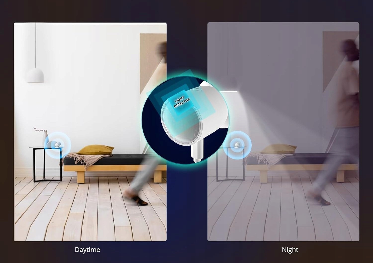Вбудований датчик світла забезпечує, що освітлення увімкнено лише тоді, коли виявляється присутність у темному середовищі. Це не тільки зручно, але й допомагає у значному зменшенні споживання енергії.