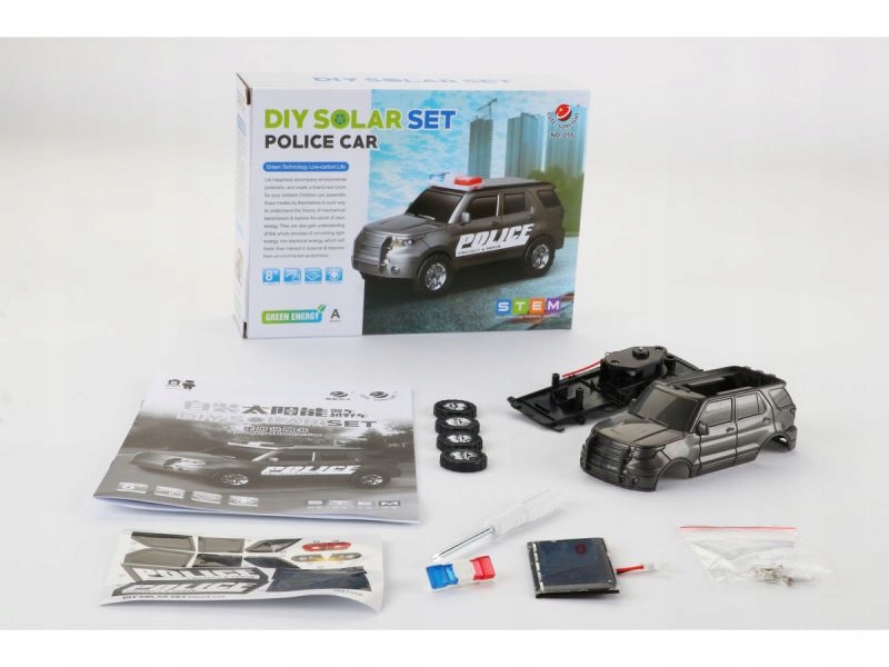 - Сонячна поліцейська машина -екологічна іграшка для сонячної поліцейської поліції -CAR -це чудова іграшка для кожного маленького дослідника. Цей екологічний автомобіль призначений для викладання та розваг одночасно! Без клею та інструментів ви збираєте його в мить ока, адже елементи ідеально поєднуються разом, і ви можете легко скласти їх на оснащення. Весело використовується для використання багато задоволення - це лише половина функцій цього блискучого набору. Завдяки цьому дитина дізнається магію сонячної енергії та зрозуміє, як її можна використовувати в повсякденному житті. І все це привабливим і доступним способом для малюка. Оснацайте цим унікальним гаджетом та відкрийте світ перед дитиною, сповненою можливостей та цікавостей! У центрі уваги з сонячним світлом двигун - це серце цього чудового іграшкового автомобіля. Просто покладіть його на сонячне світло, і ви будете готові до рятувальної операції! Необмежені веселі можливості чекають їх відкриття. Якість та безпека в першу чергу іграшка виготовлена з найвищої якості матеріалів, які були протестовані та затверджені. Гострі країни немає, і дитина може безпечно грати з ним. Крім того, він має сертифікат CE, який підтверджує його безпеку. Індикатор для батьків, я іграшку відповідно до інструкцій, а потім піддайте її сонячному світлу, щоб зарядити сонячну панель. Іграшка найкраще працює на свіжому повітрі у сонячний день. Якщо погода не сприятлива, достатньо зарядити панель у яскравій кімнаті заздалегідь. Пам'ятайте, це не працює з люмінесцентним світлом або в темній кімнаті. Для похмурих днів ви можете використовувати легку галогенну лампу для зарядки двигуна.