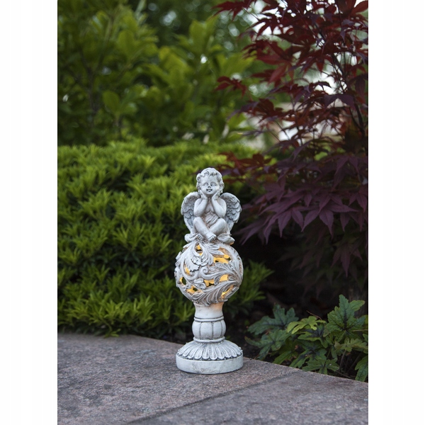 Прекрасна фігурка Ангела-охоронця, виготовлена з полірезину, з максимальна увага до деталей. Створіть оригінальну атмосферу та додайте шарму своєму саду. Сонячна лампа буде прикрасою вдень, а ввечері засвітиться красивим теплим світлодіодним світлом.