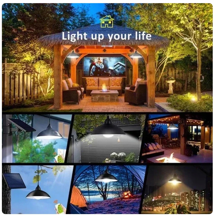 ✅ елегантна, підвісна світлодіодна садова лампа (люстра). Набір включає універсальну ручку, яка дозволяє встановлювати на паркані, дах або фасаді. Лампа оснащена яскравими та енергозаможними світлодіодами, що живиться від вбудованого акумулятора та сонячної панелі, завдяки якому вона не потребує додаткових джерел живлення. Знімний модуль з сонячною панеллю та довгим кабелем дозволяє розмістити панель на більш сонячне місце, ніж сама лампа. ІЧ -пульт дистанційного керування забезпечує зручну роботу.