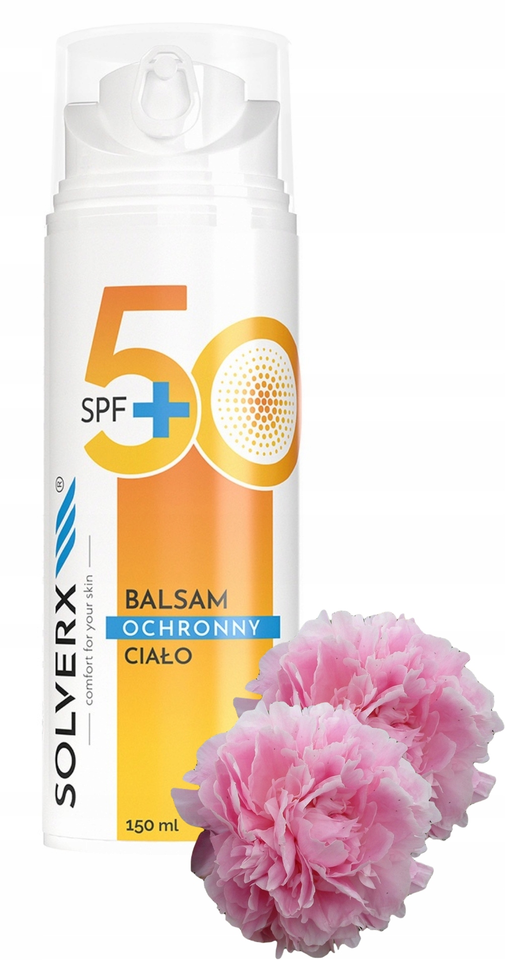Solverx SPF 50+ - це делікатна емульсія тіла з дуже високим захистом SPF. Високий вміст, стабільні ультрафіолетові фільтри гарантують ефективний захист від сонячного випромінювання. Завдяки додатковим інгредієнтам у рецептурі, такими як екстракт Peoning та трегалоза, це запобігає процесу виживання шкіри, нейтралізує вільні радикали, захищаючи тим самим ДНК клітин шкіри. Вміст пребіотиків підтримує природний мікробіом шкіри.