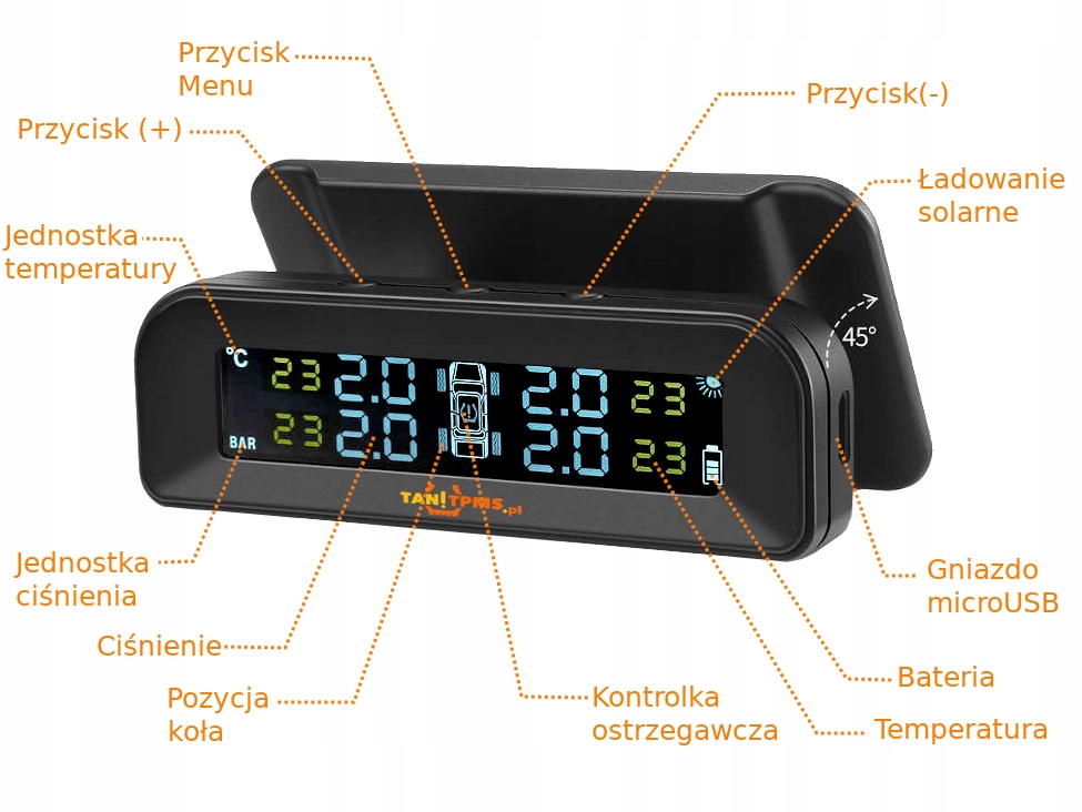 Інтелектуальна система контролю тиску в шинах у реальному часі. Він оснащений чотирма бездротовими датчиками, прикрученими до колісного клапана. Блок управління приладом оснащений чітким дисплеєм, що інформує поточний тиск і температурув кожному з коліс автомобіля. Блок керування готовий до приклеювання до лобового скла, сонячна панель має самоклеючу стрічку, екран можна нахиляти відносно сонячної панелі. Завдяки сонячній панелі блок керування додатково заряджається від сонячної енергії в сонячні дні. Станція також оснащена роз’ємом мікро-USB, який використовується для заряджання акумулятора в періоди меншого сонячного світла. Повна зарядка батареї та підзарядка від сонячної енергії дозволяє пристрою працювати від 6 до 9 місяців без необхідності підключення USB-зарядного пристрою.