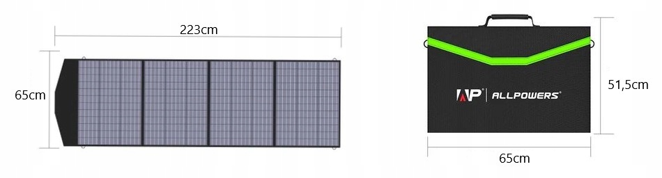 Після складання панель має компактні розміри 25,6 × 20,3 × 2,4 дюйма і важить 6,3 кг (13,9 фунтів) , завдяки якому він легко переносити легко і не займає багато місця в сумці . Максимальна інтенсивність живлення (25a) та роз'єм сонячного роз'єму дозволяють ефективно живити станції живлення, кемпінгові пристрої, будинки, каравани та літні будинки .
