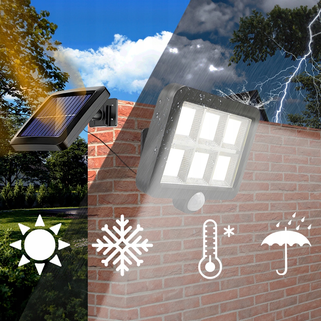Світильник оснащений датчиком руху та сутінків. Датчик руху вмикає світло, коли виявляє рух в межах робочого діапазону, а датчик сутінків активує лампу, коли стемніє. Завдяки цьому ви зберігаєте енергію, накопичену за день, і додатково продовжуєте роботу лампи на одному заряді.