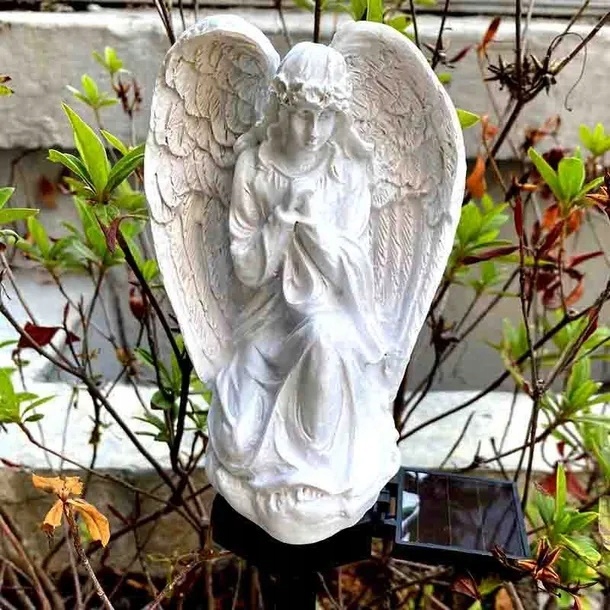 - Значний сонячний світильник у формі ангела. Ідеально підійде для цвинтаря чи саду.