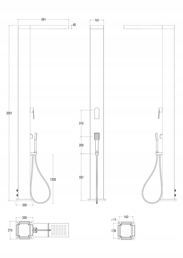 - Довжина шланга від душової лійки (без ручки): приблизно 120 см.