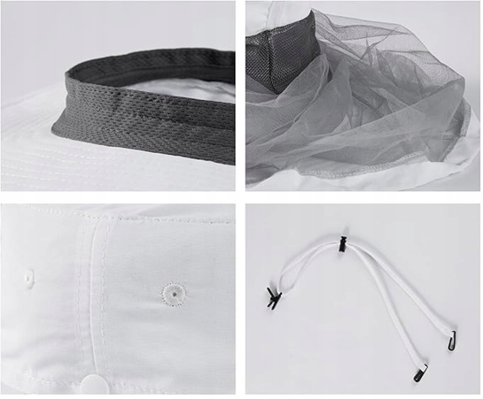 темна, прокатана сітка зменшує відбивачі і захищає обличчя від комарів та інших комах. Коли це не потрібно - приховано в спеціальній кишені , завдяки якому капелюх виглядає як класичний сонцезахисний крем.