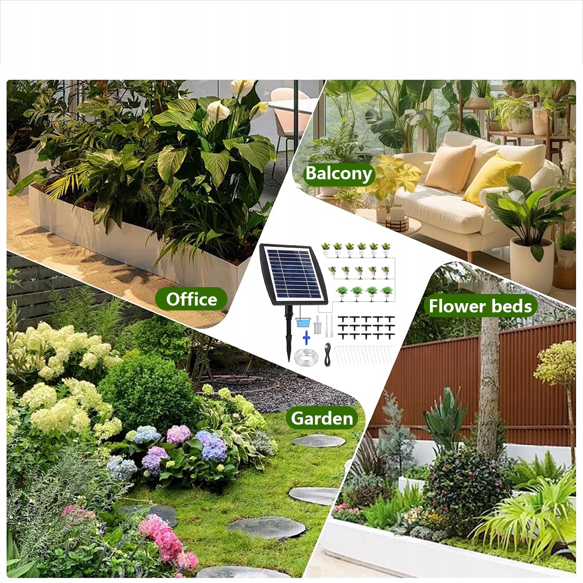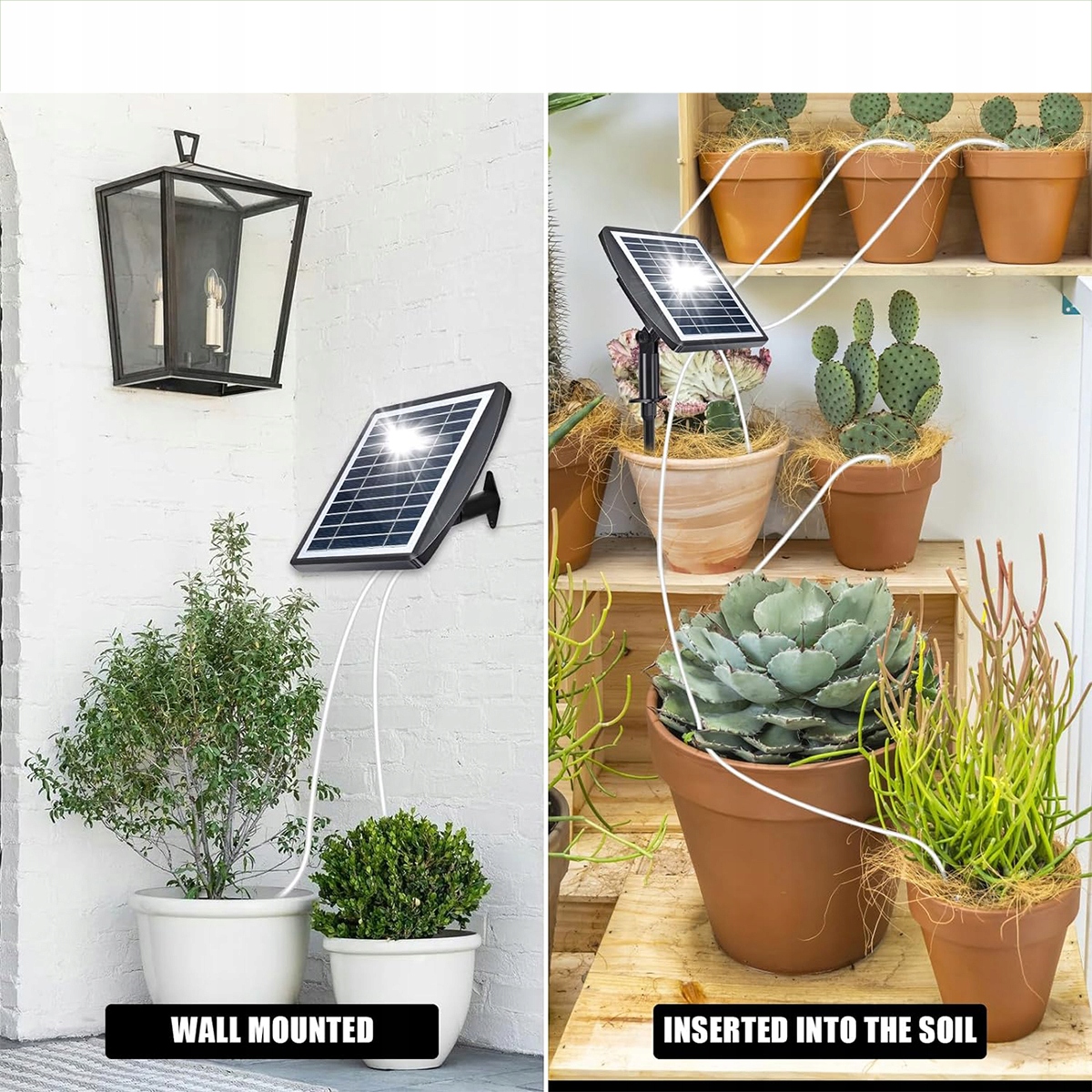Цей універсальний комплект автоматичної системи крапельного зрошення живиться від сонячної енергії. Додаткова проводка або встановлення акумулятора не потрібні. Виготовлена з водонепроникного і стійкого до сонячного світла матеріалу. Сонячна система зрошення вуличних рослин дозволяє вам раз і назавжди відчути справжню ефективність.