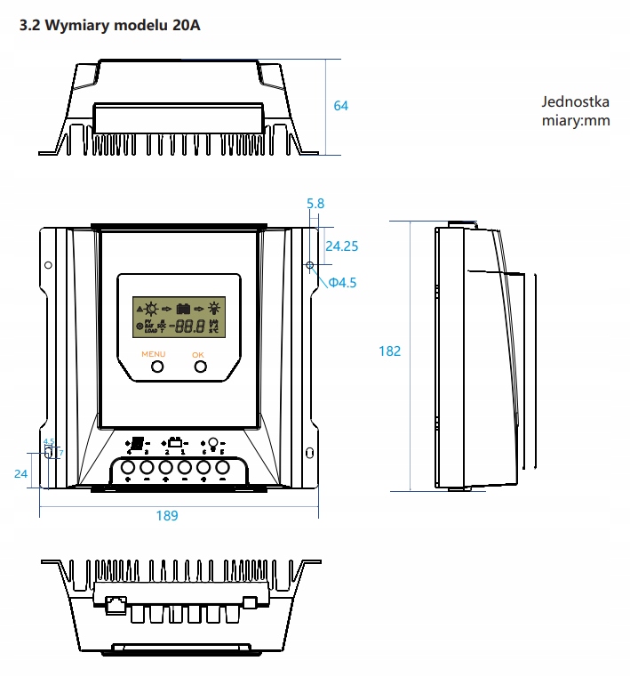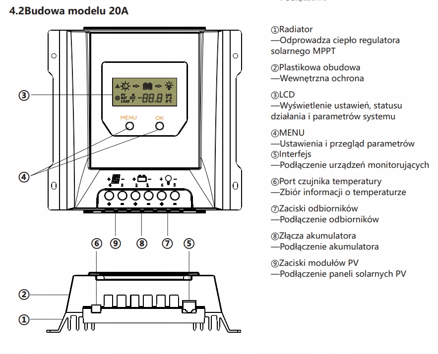 СОНЯЧНИЙ РЕГУЛЯТОР ЗАРЯДУ 12V / 24V 20A MPPT BLUETOOTH VOLT POLSKA