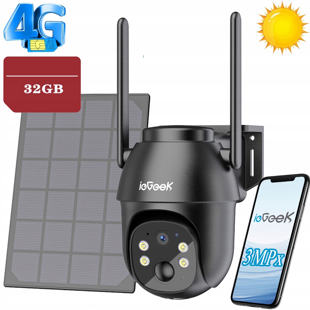 Сонячна камера сонячної камери IEGEEK SOLAR IP SIM 3G 4G LTE GSM 2K 3MPX 32GB CARD на 9600MAH