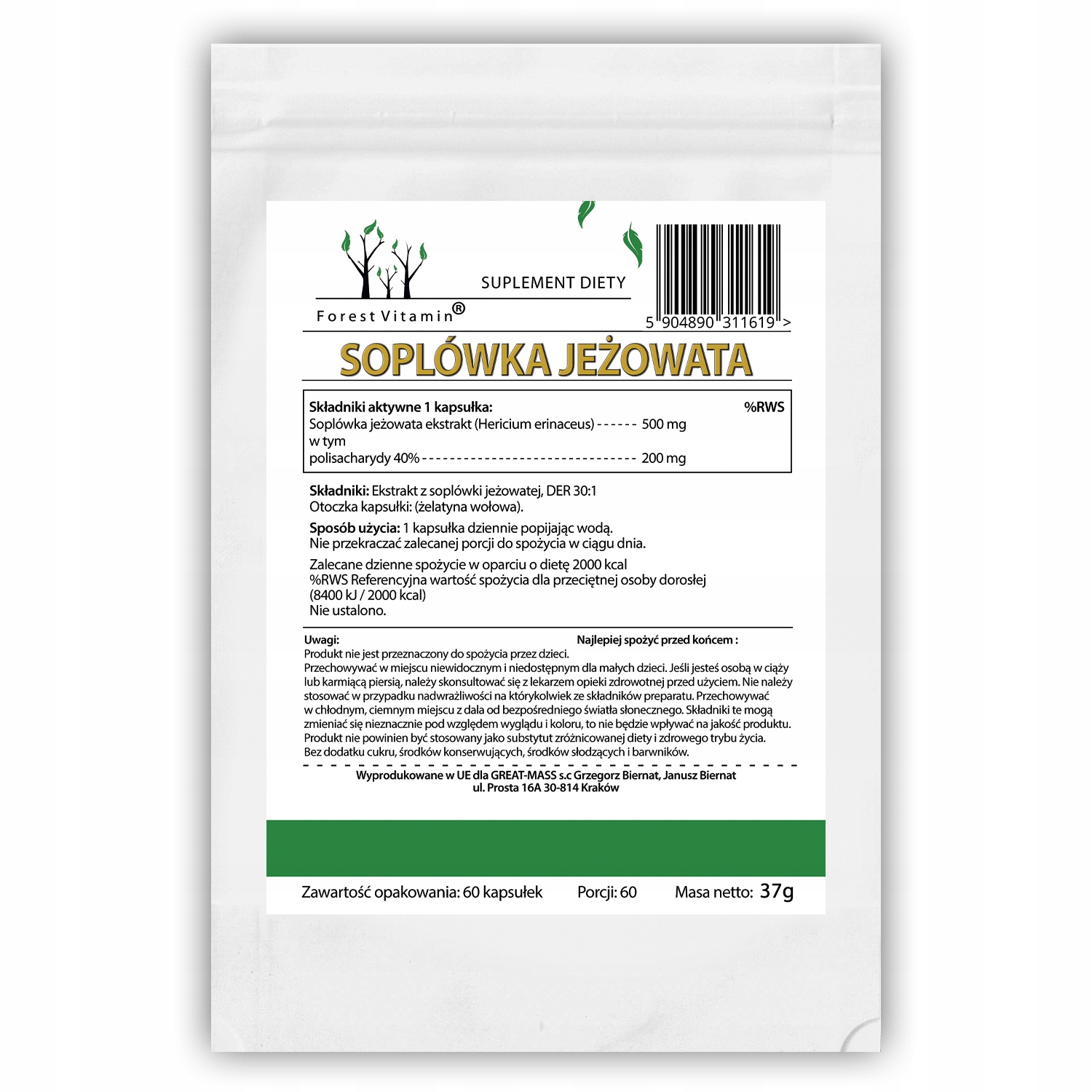 Soplówka Jeżowata 500mg 60kap LION'S MANE PAMIĘĆ MÓZG KONCENTRACJA