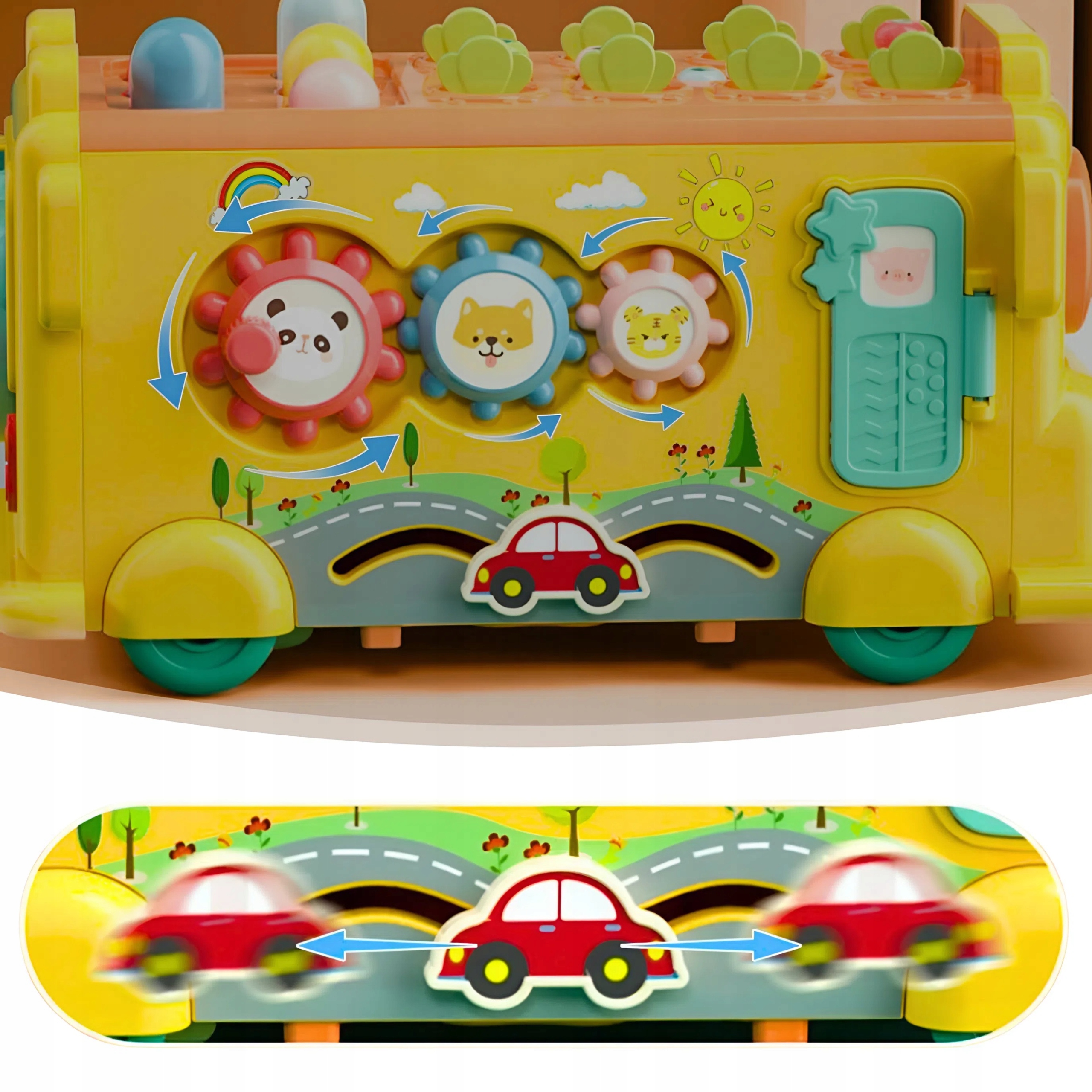 Це Інтерактивний освітній автобус 5в1це ідеальний спосіб навчатися, розважаючись. Містить ксилофон, черв'яків, кубики, молоток і сортувальник, які підтримують розвиток дитини та заохочують до відкриттів.