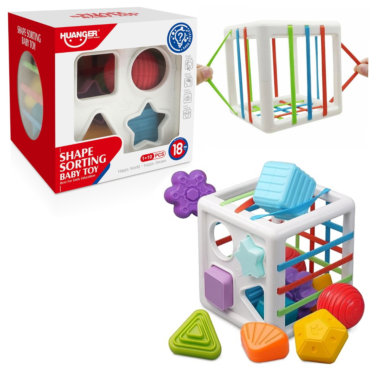 СОРТЕР МОНТЕССОРІ ЕЛАСТИЧНИЙ КУБИК З ГУМКАМИ + КОЛОДКИ