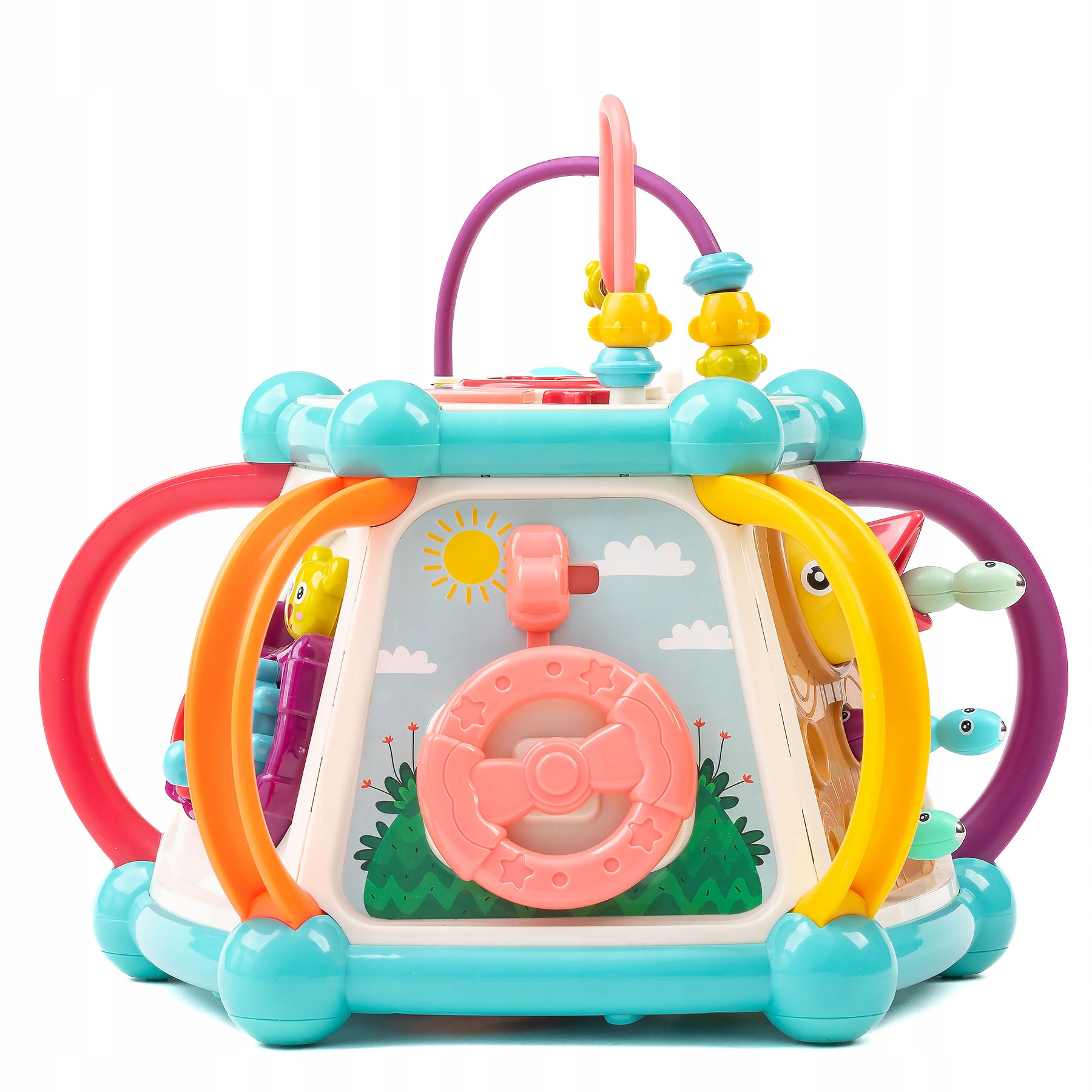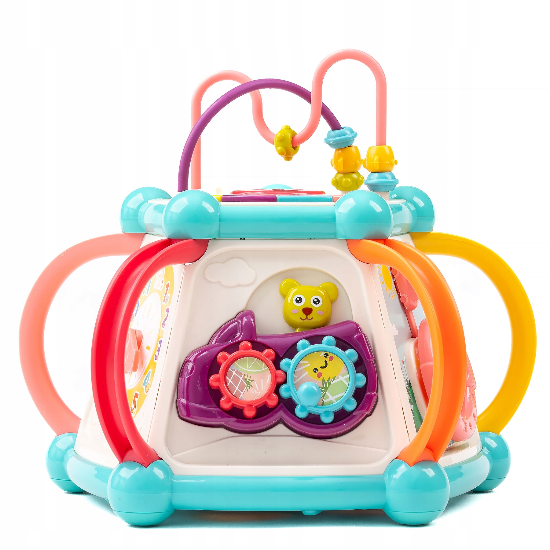 Барвистий навчальний куб, завдяки своїй різноманітності спонукатиме дитину до самостійної гри. Кожна сторона куба пропонує нові можливості для гри, не даючи нудьгувати. Куб містить багато сюрпризів, які дитина буде любити відкривати.