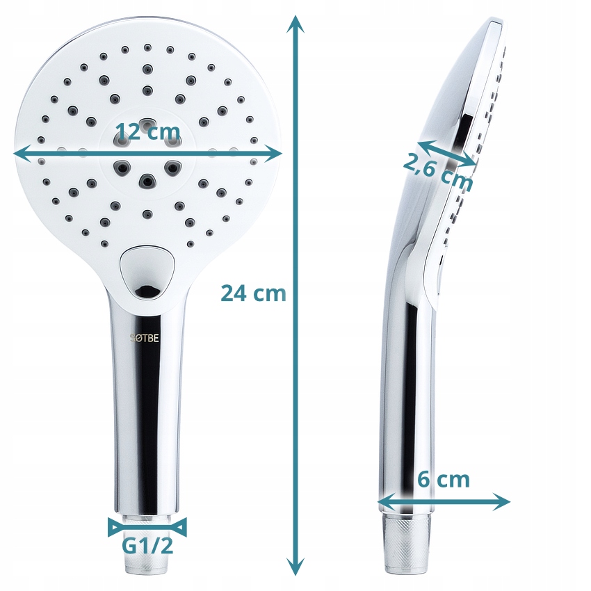 SOTBE LARK WHITE 3-функціональна душова лійка, кругла, біла, хром