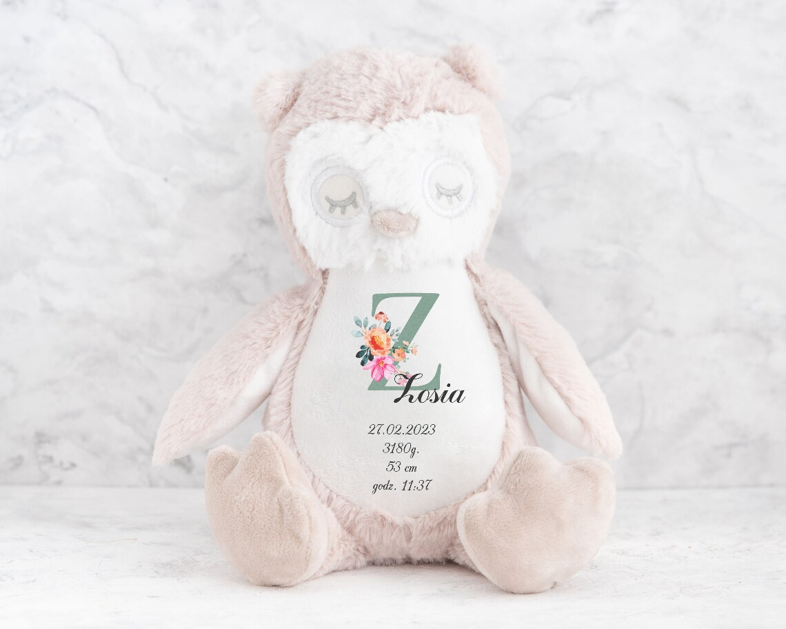 Талісман-сова з іменні свідоцтвом про народження дитини — чудова ідея для подарунка на хрещення або день народження дитини.