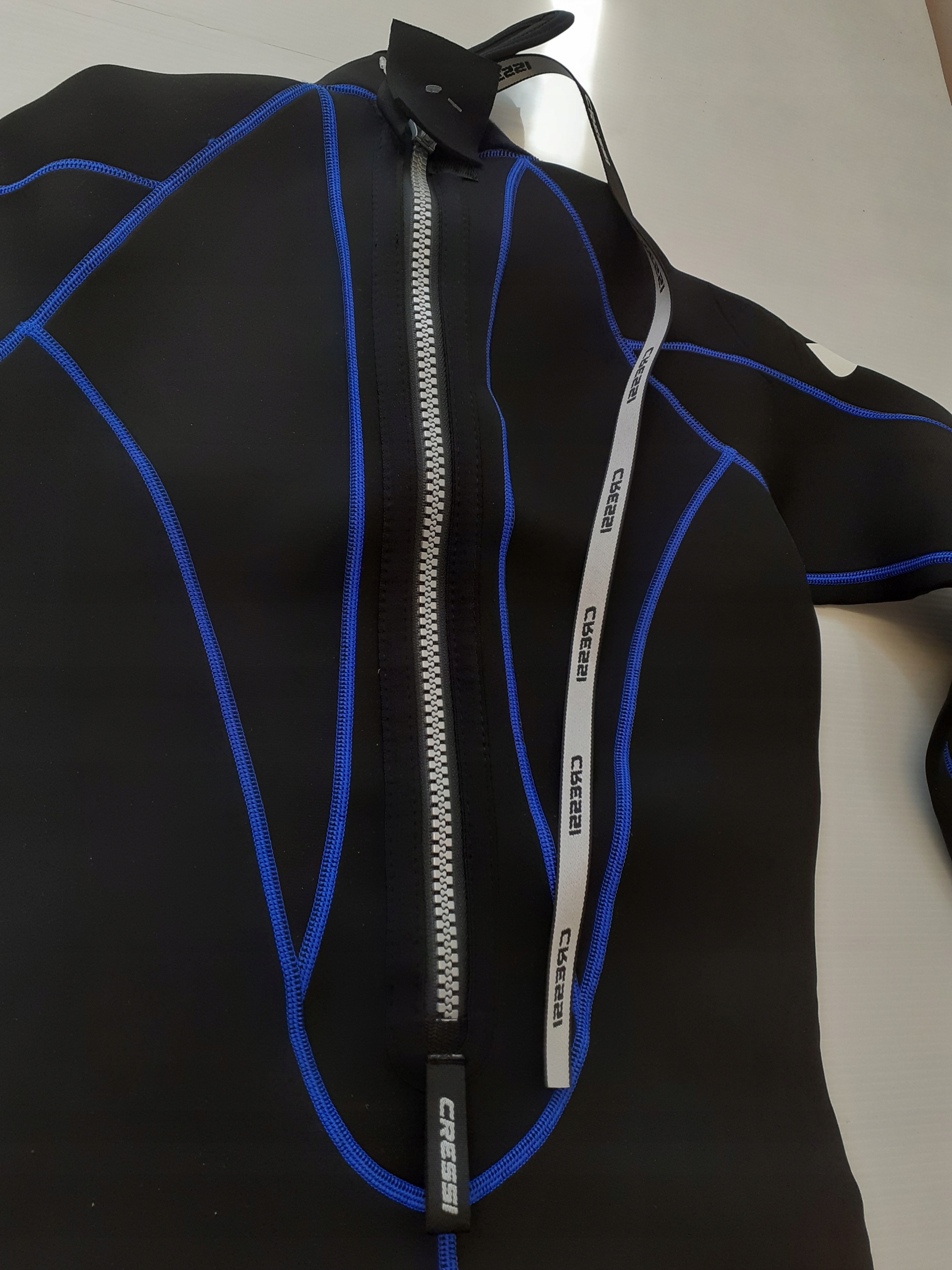 Новий продукт. Ця тканина поєднує хорошу міцність з високою еластичністю та гладкою поверхнею. Це покращує гідродинаміку, еластичність та гарантує швидке висихання, коли костюм піддається вітру під час водних видів спорту, таких як катання на лижах, плавання або серфінг. Клітка в грудному віці та запобігає тиску в цій області.