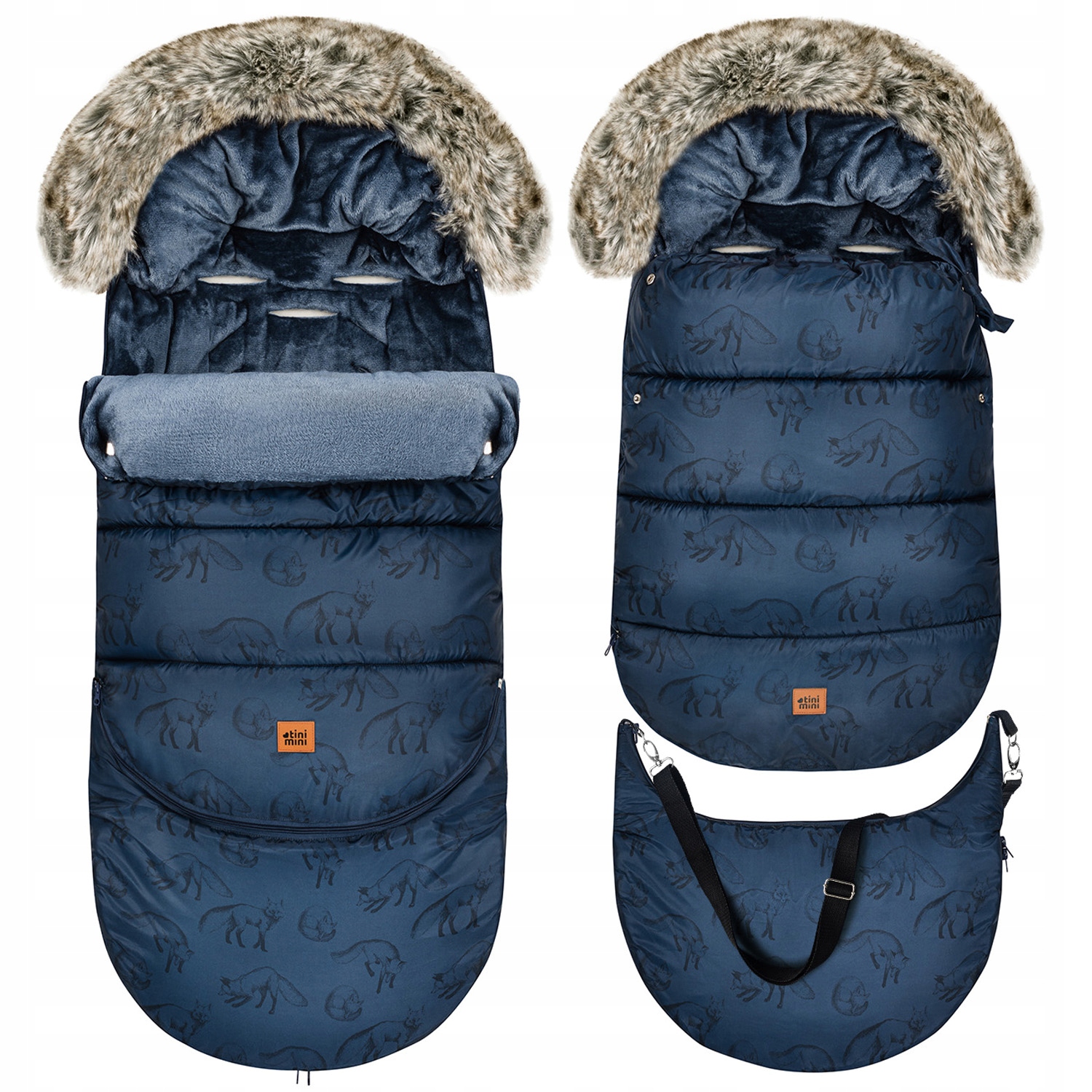 СПАЛЬНИЙ МІШОК РЕГУЛЮВАНИЙ ДЛЯ КОЛЯСКИ GONDOLAL, 110см З ХУТРОМ, ТЕМНО-СИНІЙ